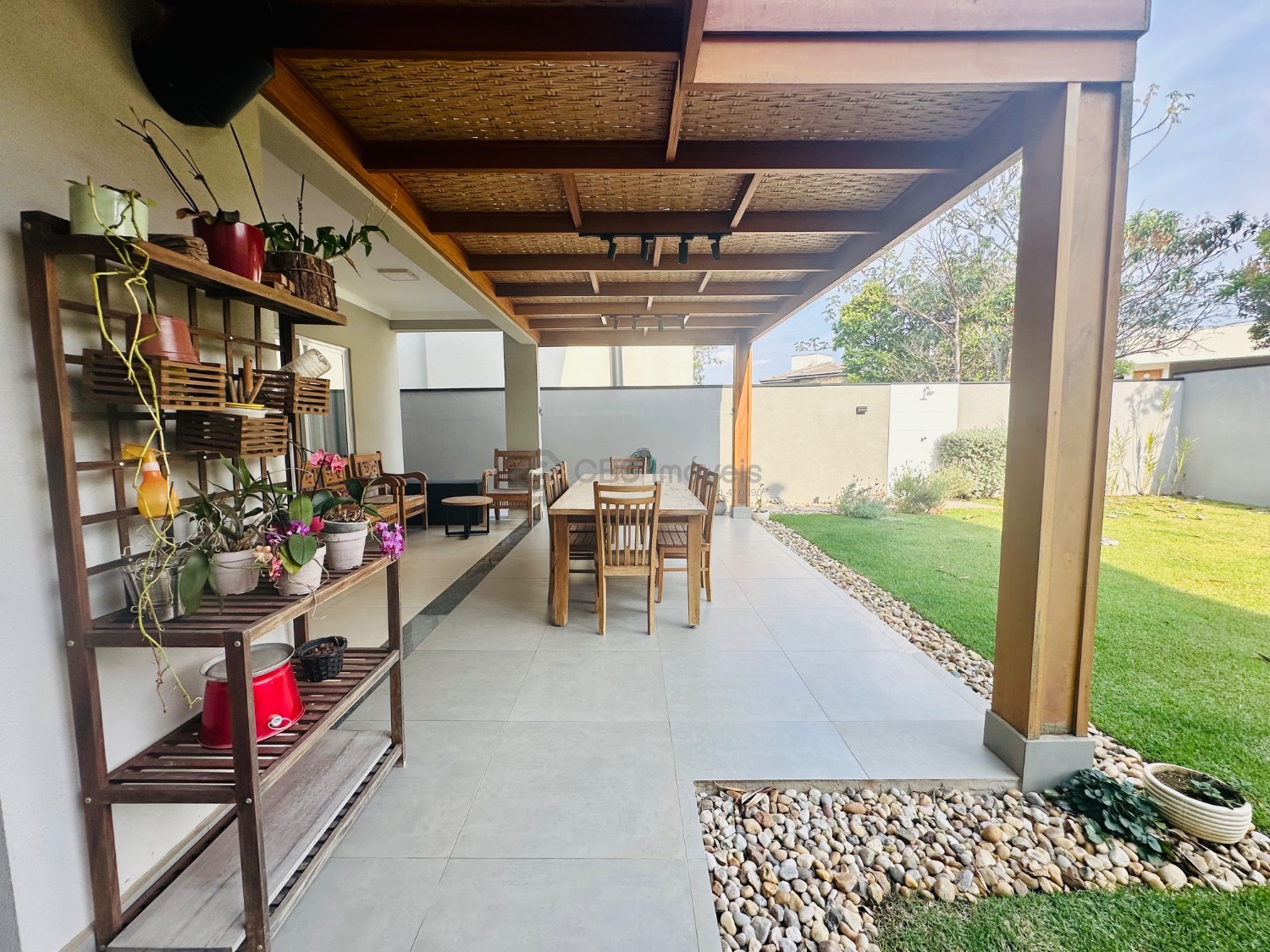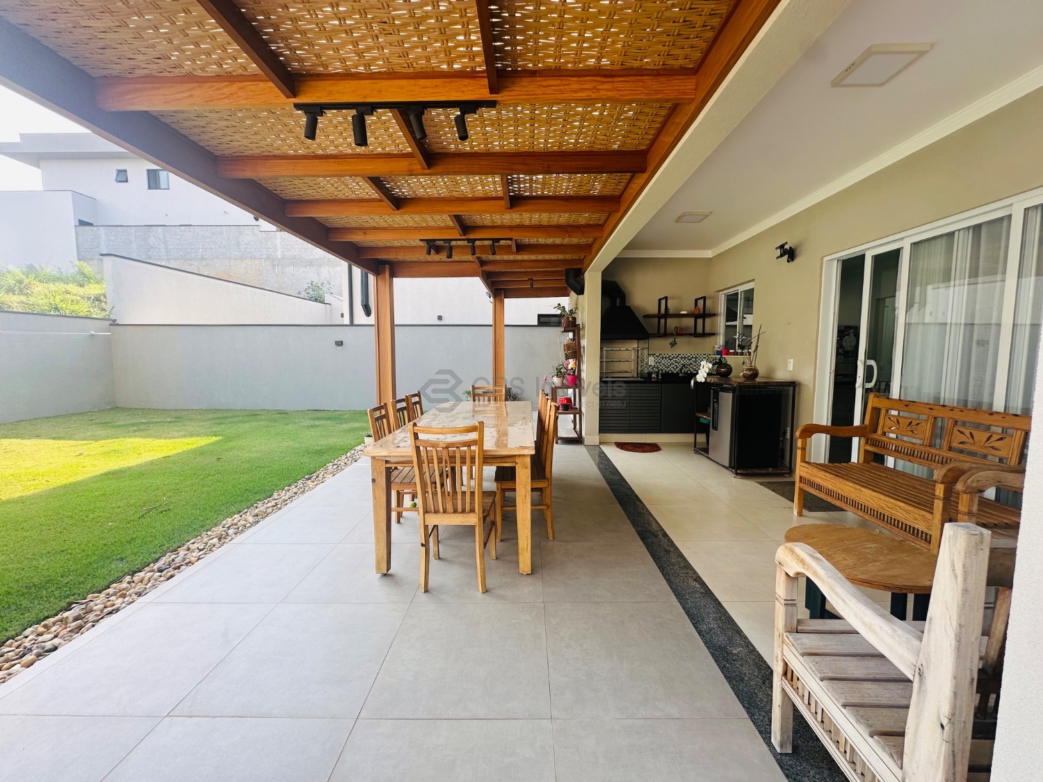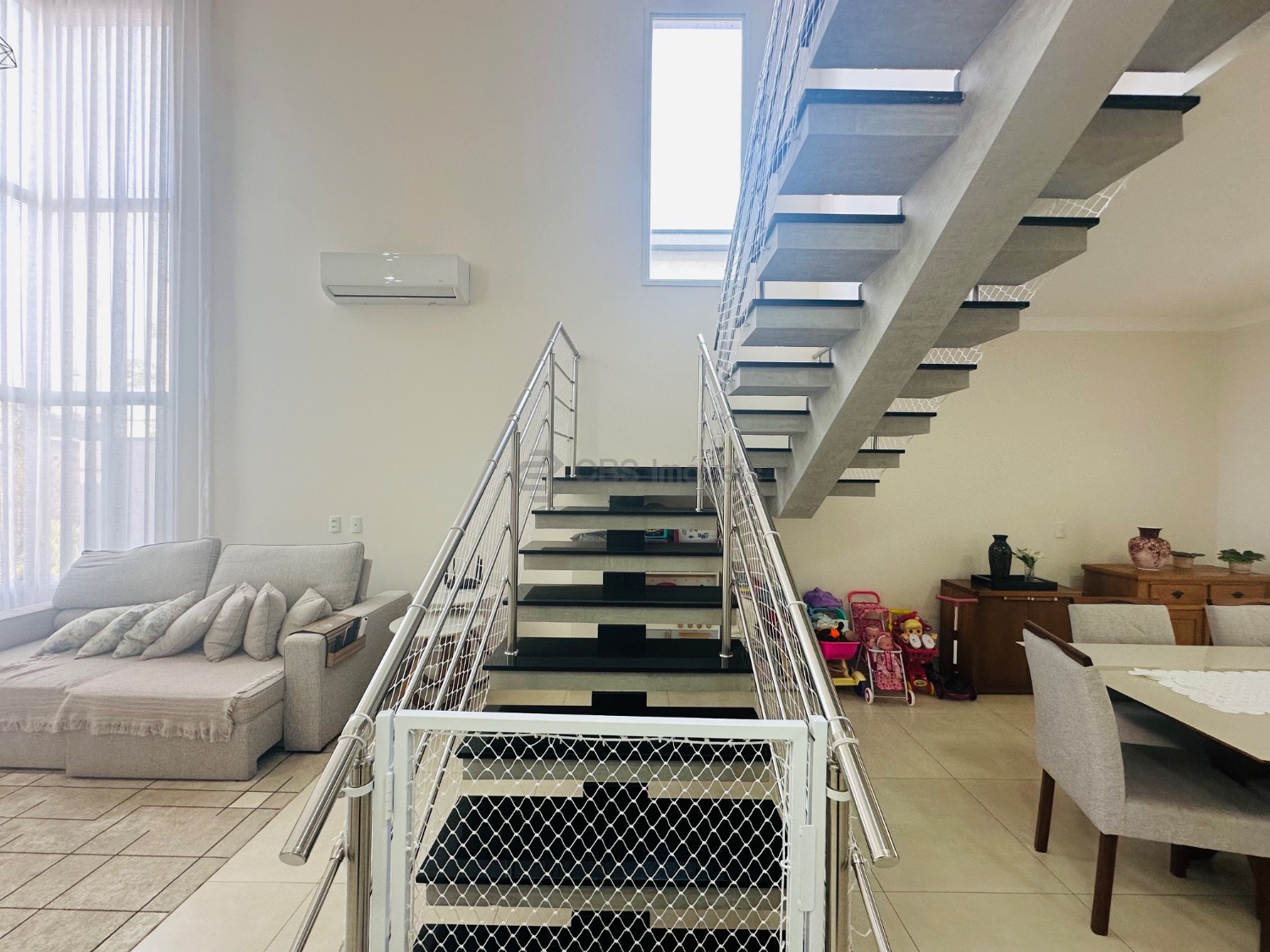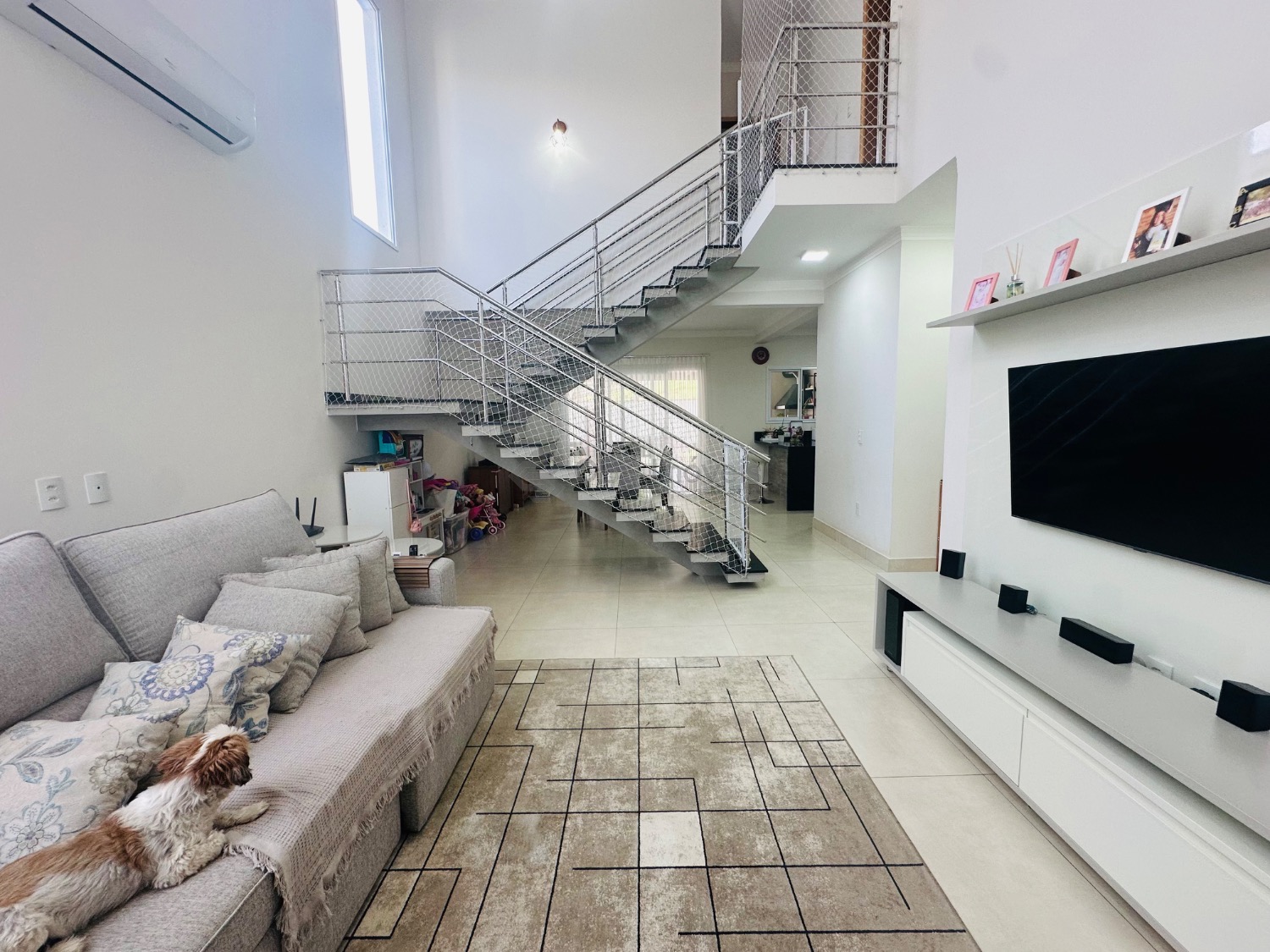 Sobrado moderno com 3 suítes, sendo uma delas master com closet e sacada, todas climatizadas com ar-condicionado. A área social é ampla e integrada, com sala de estar de pé-direito duplo, lavabo, sala de jantar e cozinha americana com armários planejados. Conta ainda com lavanderia e despensa. O espaço gourmet integrado à casa é perfeito para receber, com churrasqueira e um belo quintal gramado, ideal para momentos de lazer em família.