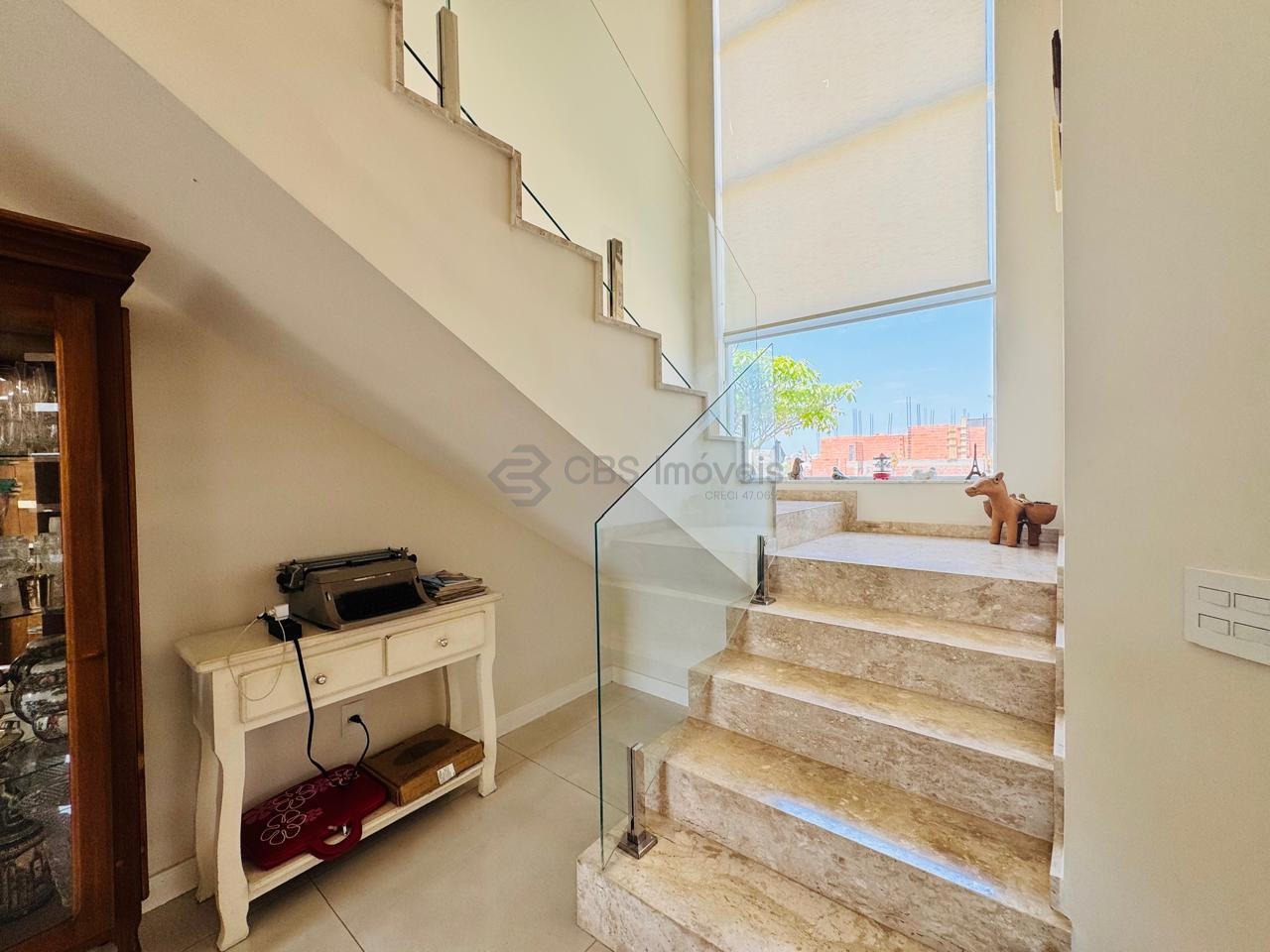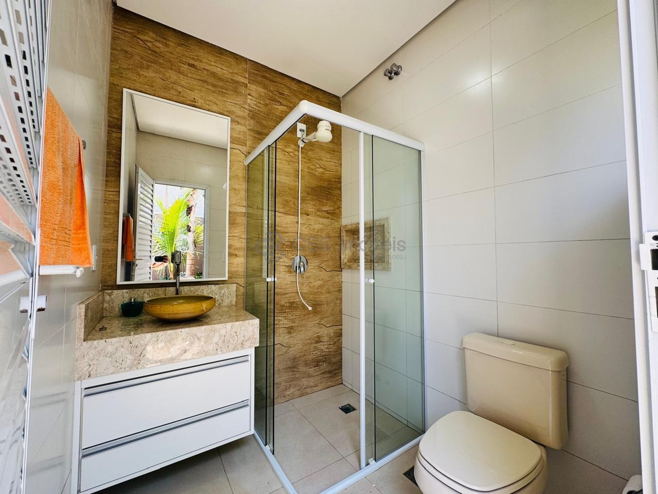 No piso superior temos 3 quartos, sendo 2 suites, com closet, todas com ar condicionado