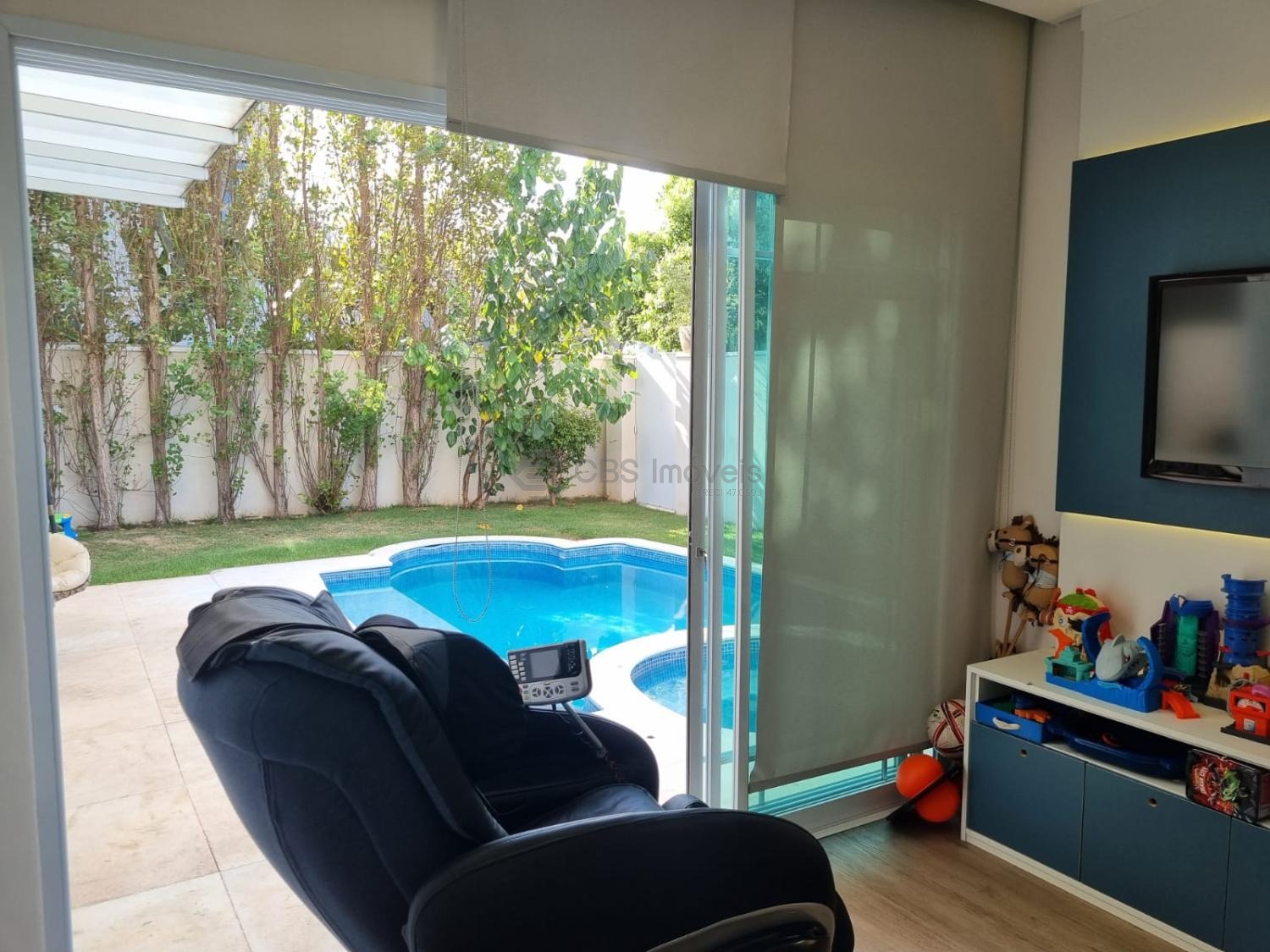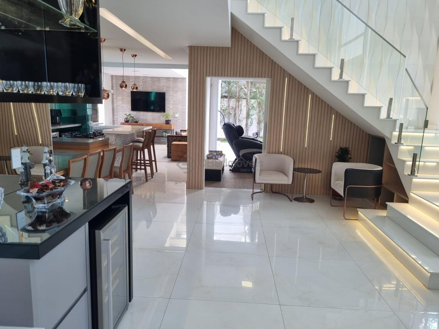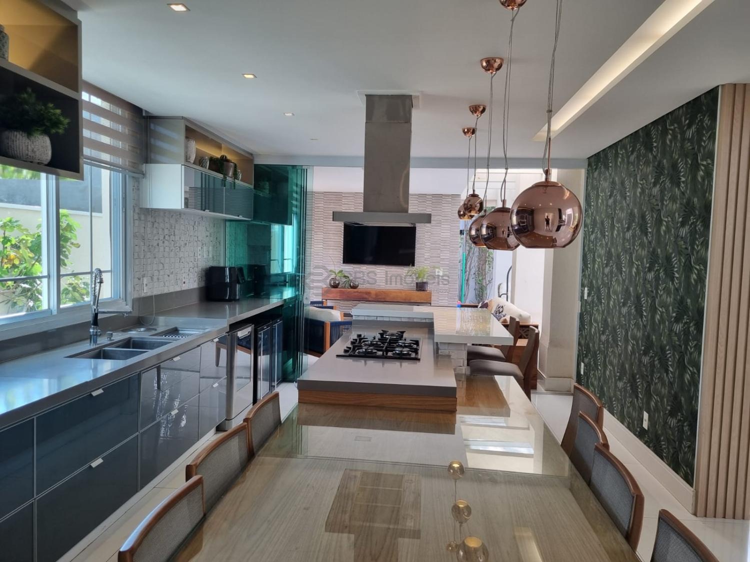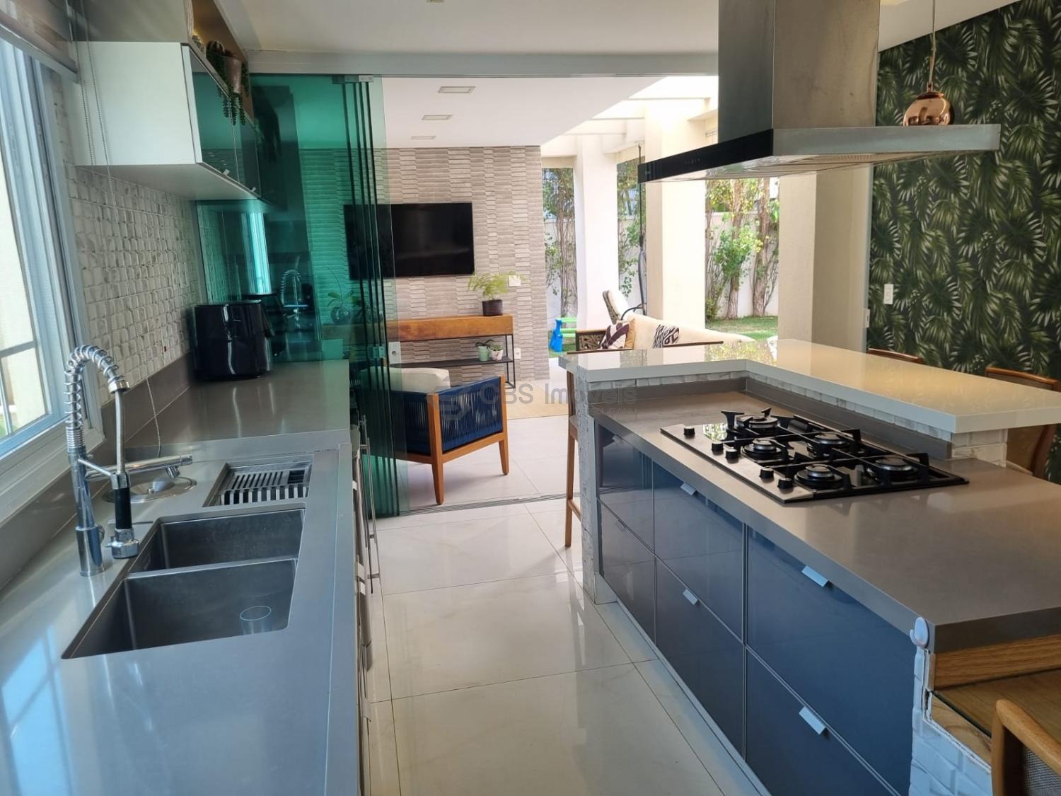 Ele conta ampla sala de estar integrada com cozinha estilo americano, com ilha, eletrodomésticos embutidos. Área de serviço, despensa, espaço gourmet , piscina aquecida em área de lazer arborizada, banheiro de apoio, lavabo, vagas para 4 carros.