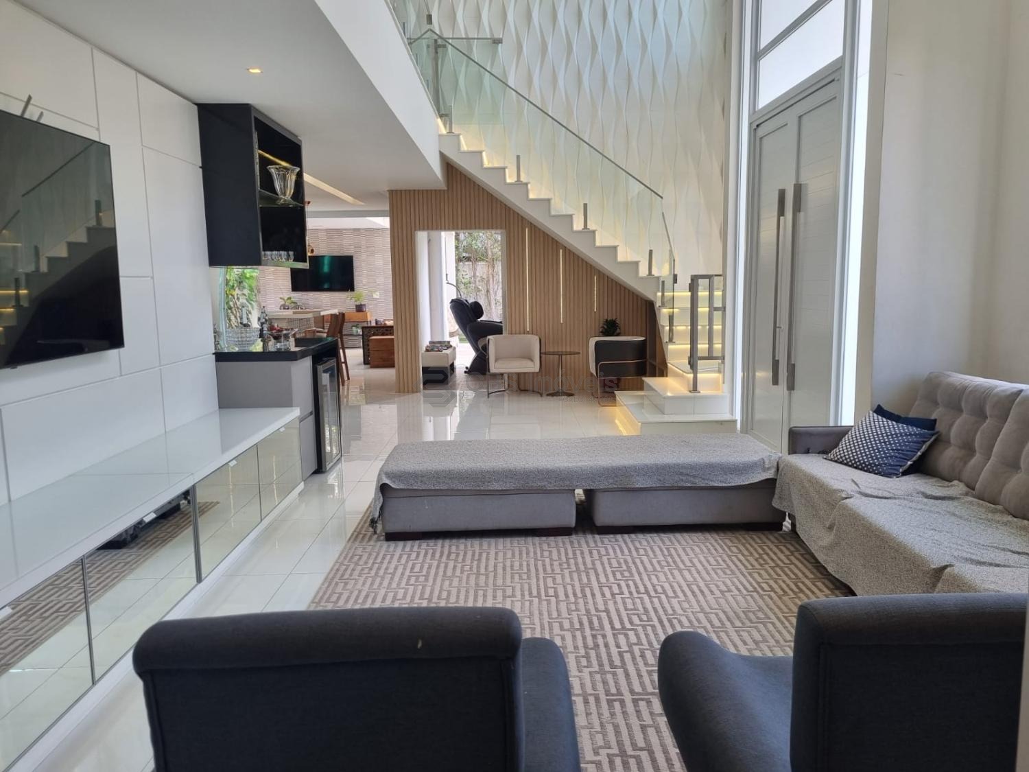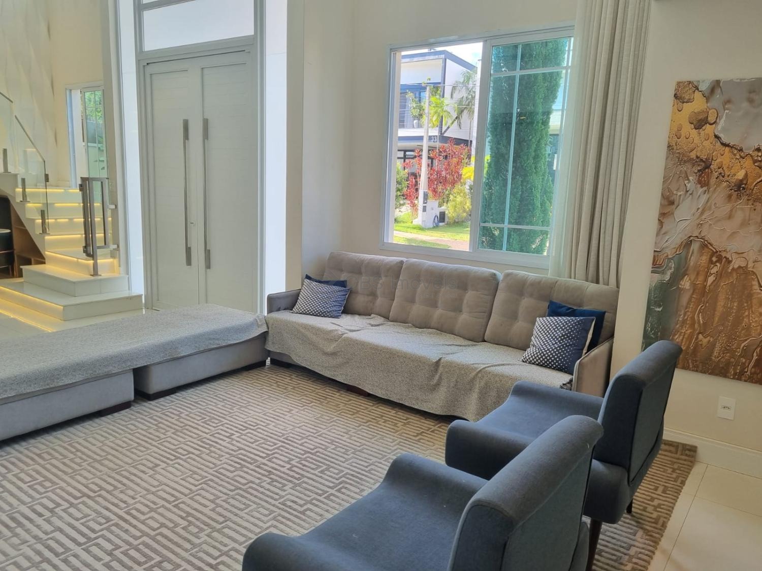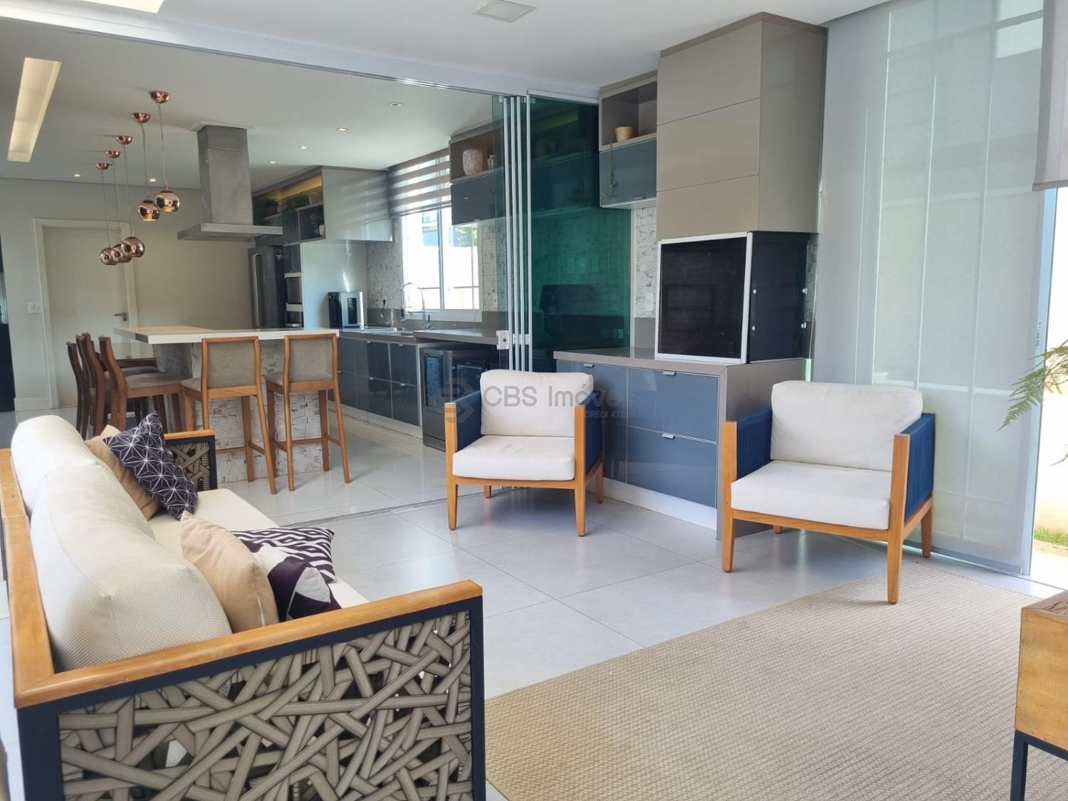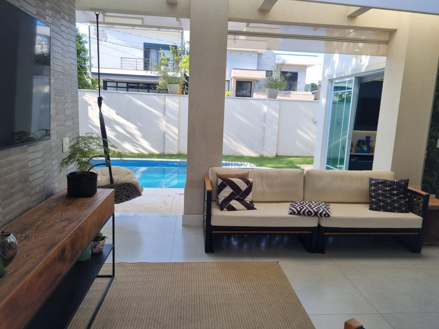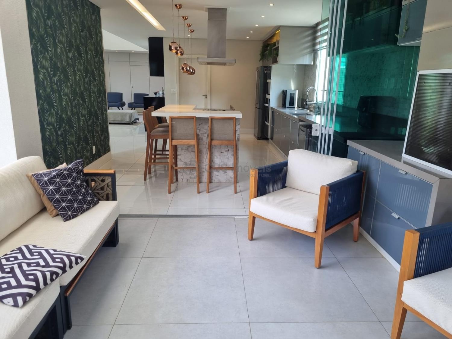 Ele conta ampla sala de estar integrada com cozinha estilo americano, com ilha, eletrodomésticos embutidos. Área de serviço, despensa, espaço gourmet , piscina aquecida em área de lazer arborizada, banheiro de apoio, lavabo, vagas para 4 carros.