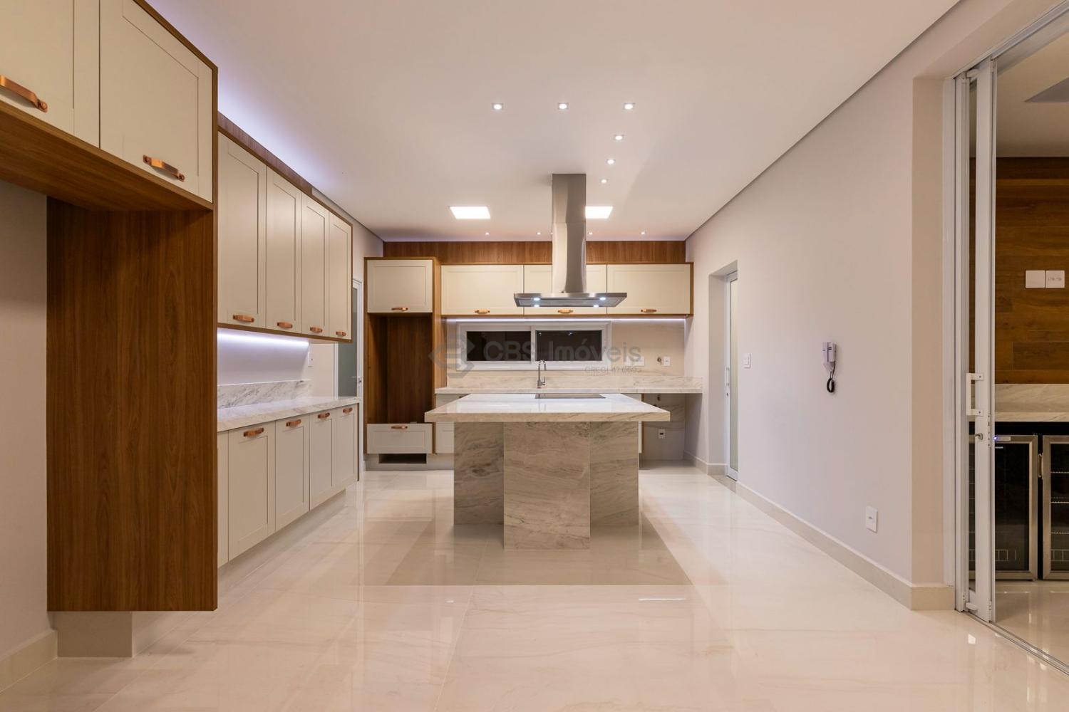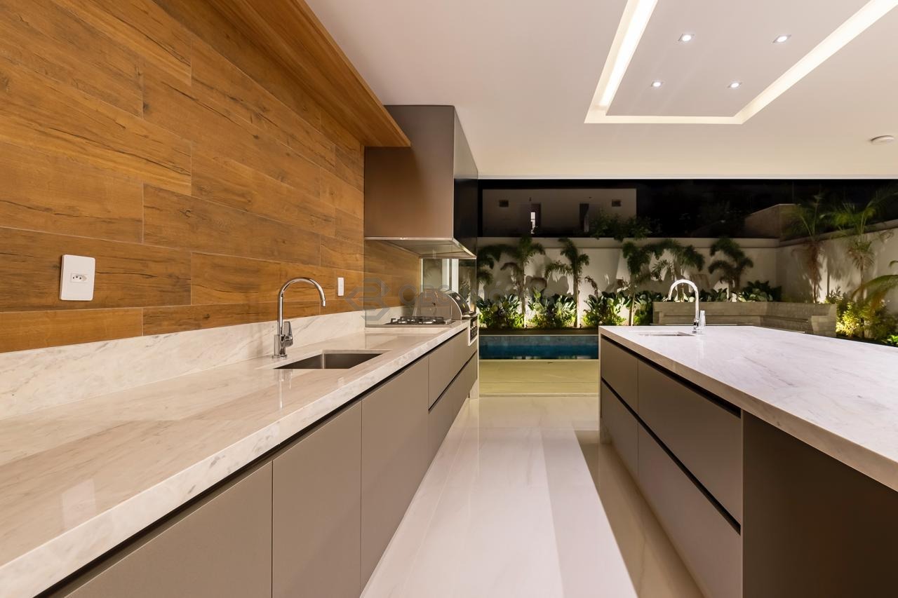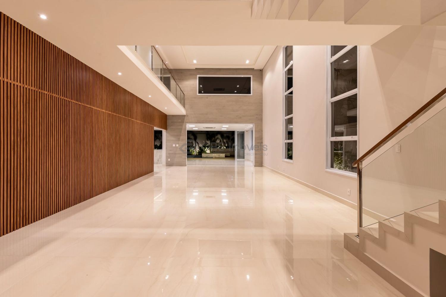 No térreo possui sala para 2 ambientes com pé direito duplo e muita integração. A cozinha é tipo americana completa com armários Kitchens, eletrodomésticos instalados e ainda temos home preparado para projetor, escritório com banheiro que pode ser reversível para uma suíte térrea, lavabo, lavanderia e garagem para 4 carros, suíte de serviço.