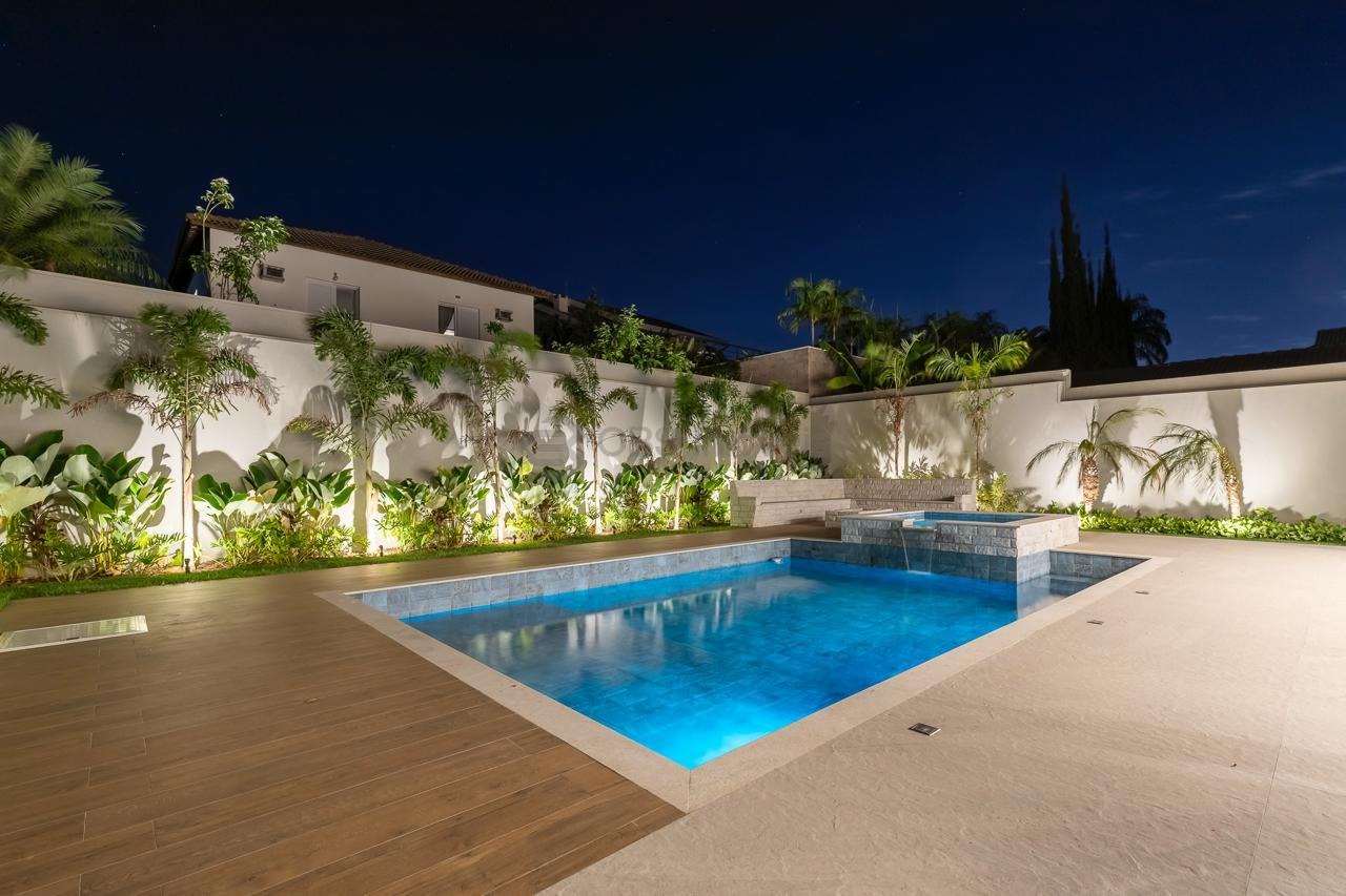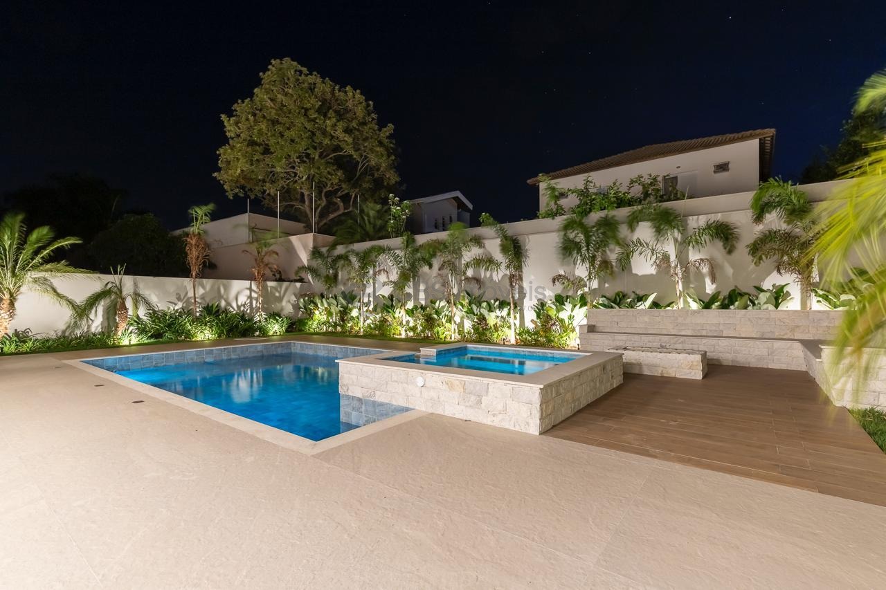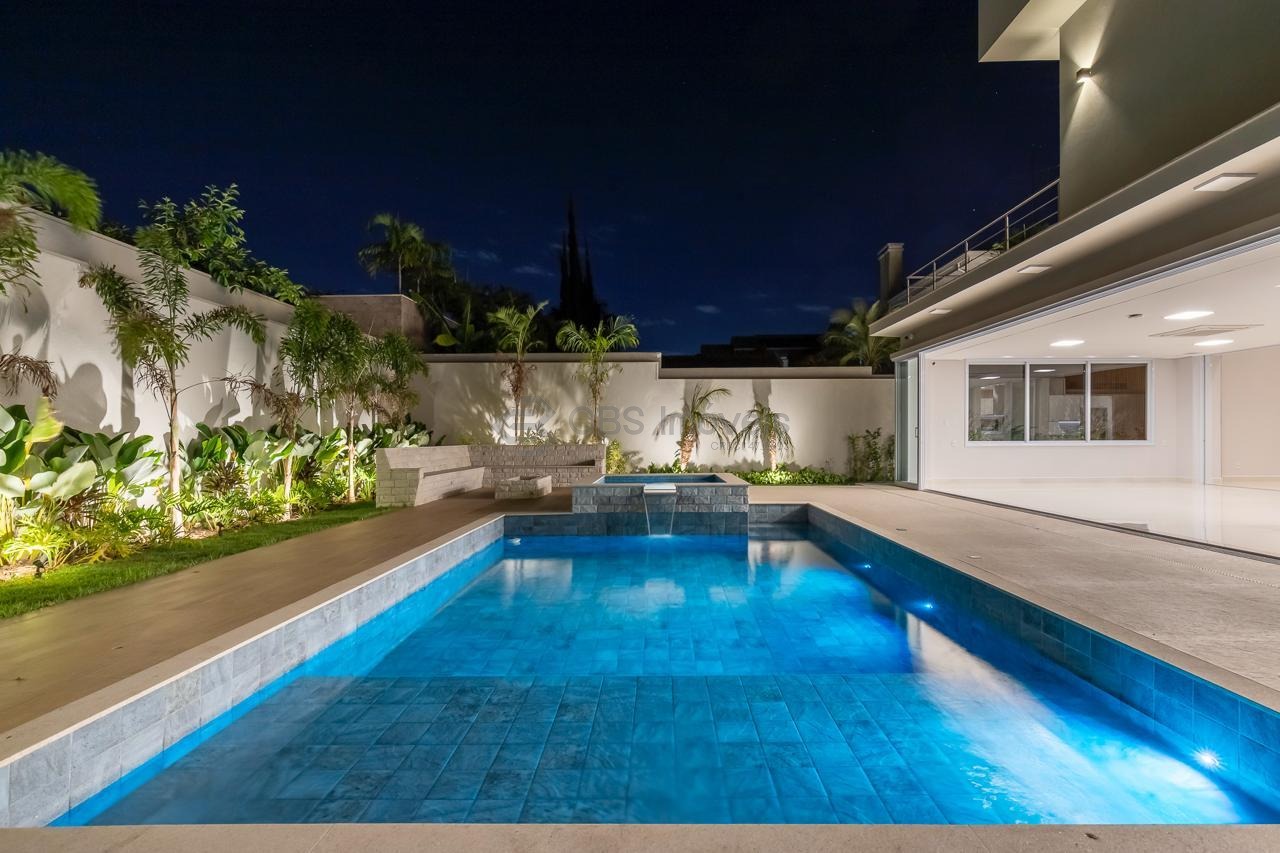 A casa possui automação, som ambiente, câmeras de monitoramento, elevador, paisagismo.