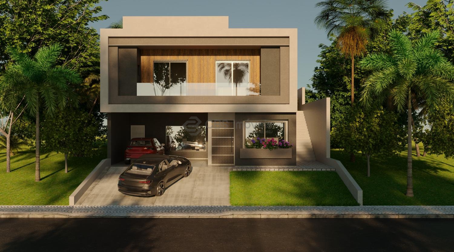 No térreo possui living para 2 ambientes com pé direito duplo e muita integração, suíte reversível, cozinha completa, lavabo, área de serviço, depósito, escritório com um fino acabamento na casa toda..