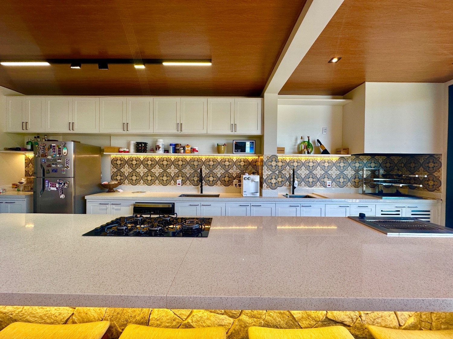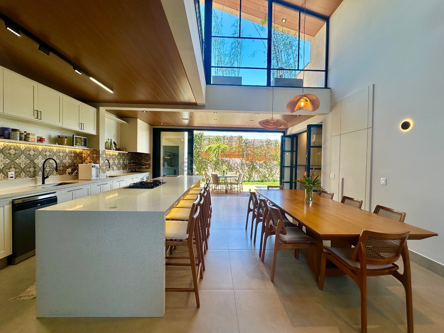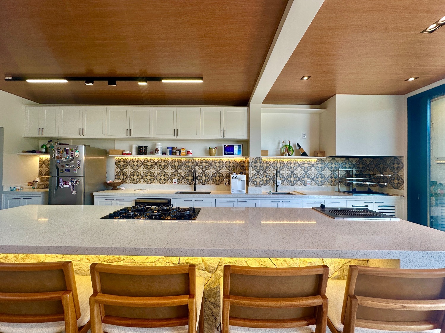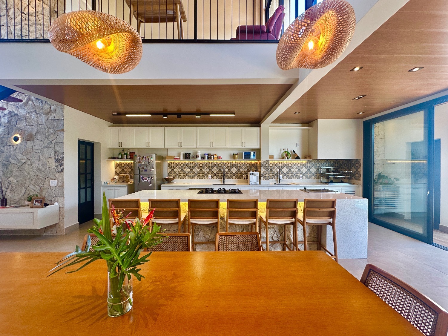 A cozinha completa, com acabamento premium, é totalmente integrada à área gourmet, criando o cenário perfeito para receber amigos e familiares.