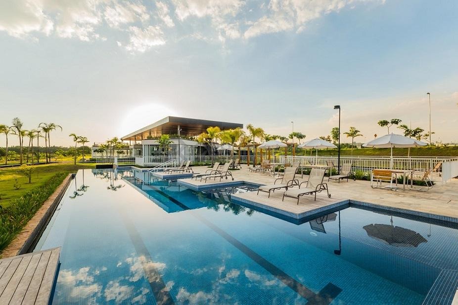 infraestrutura completa, com 3 quadras de tênis em saibro, 2 quadras de futebol, 3 quadras de areia (vôlei e beach tênis), piscinas, clube com salão de festas, academia equipada, spa completo, brinquedoteca, pomares, trilhas e um lago com deck.