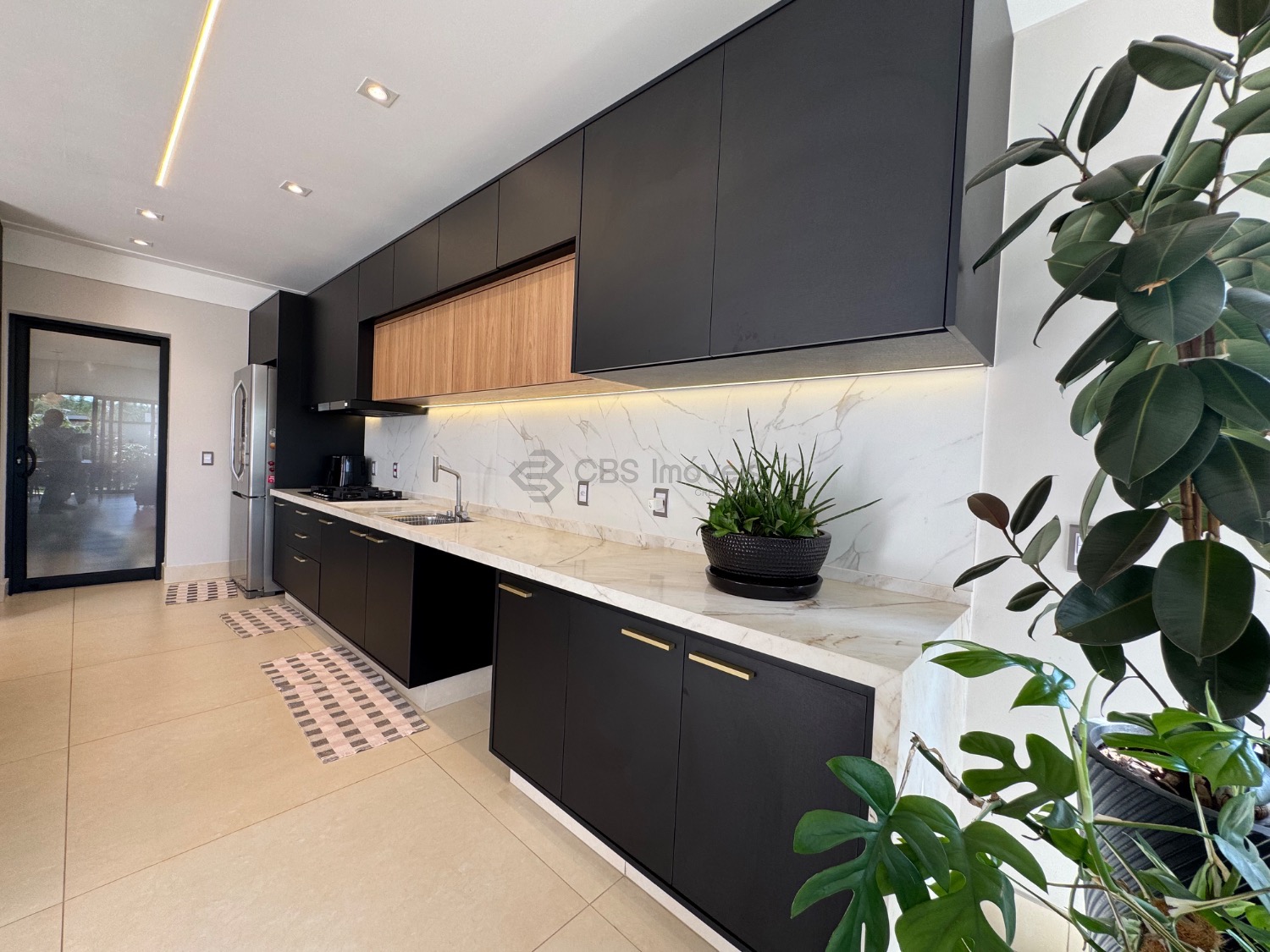 cozinha com despensa, lavanderia. Iluminação em LED. O paisagismo e o projeto