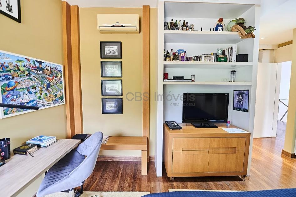 As salas de estar, jantar e TV são integradas, criando um ambiente harmônico e ideal para momentos em família.