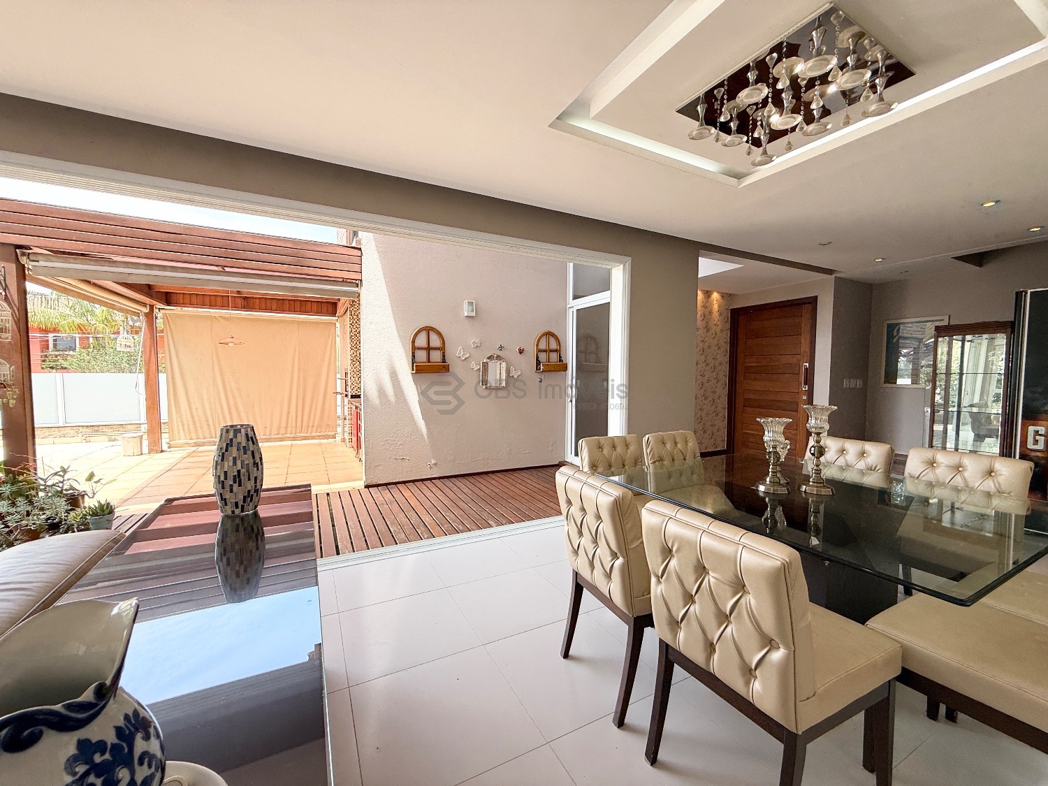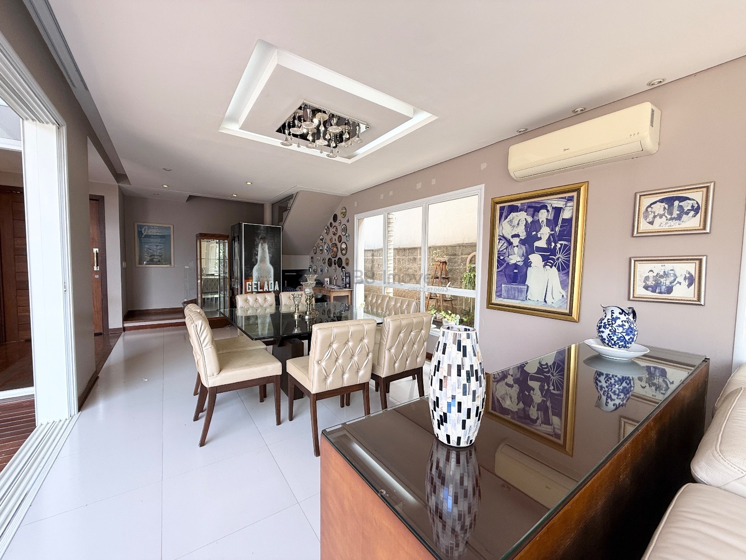 No térreo temos sala para 2 ambientes e muita integração. A cozinha é independente, completa com armários, despensa, lavabo, lavanderia e garagem para 4 carros.