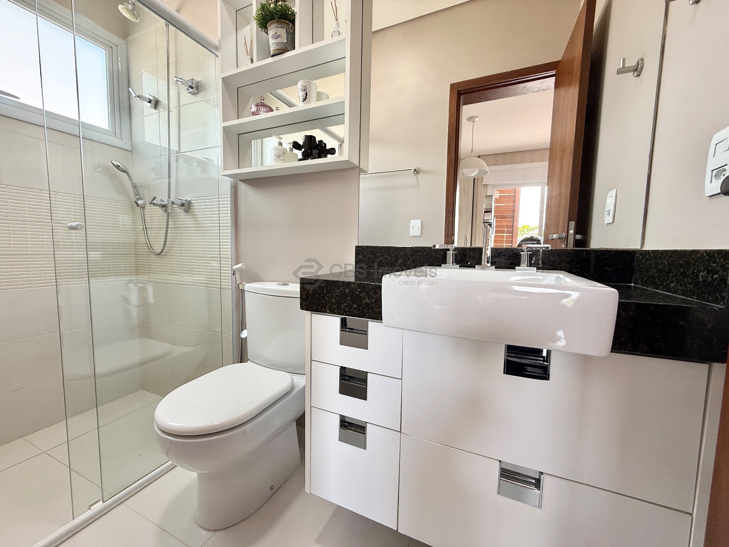 No piso superior temos 3 quartos que são suítes, sendo a master com linda vista e closet, home theater, ar condicionado e muitos armários!