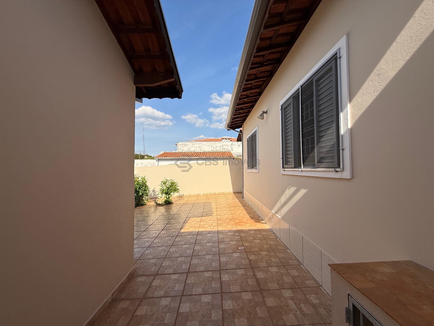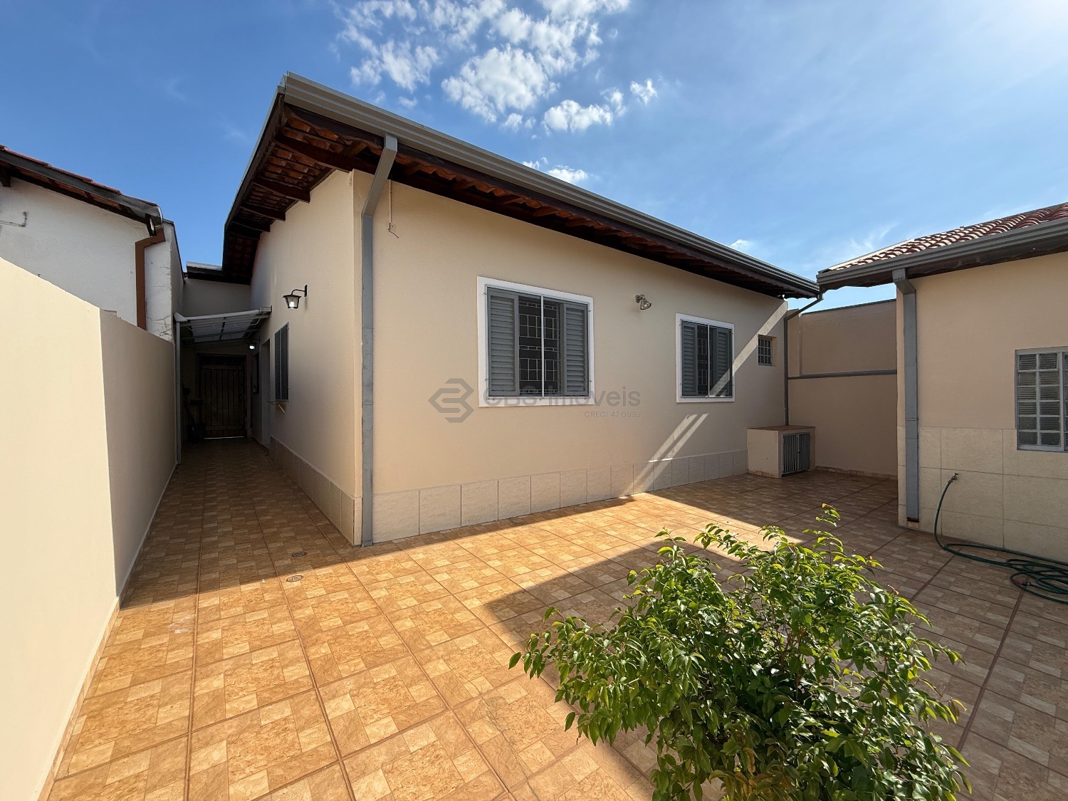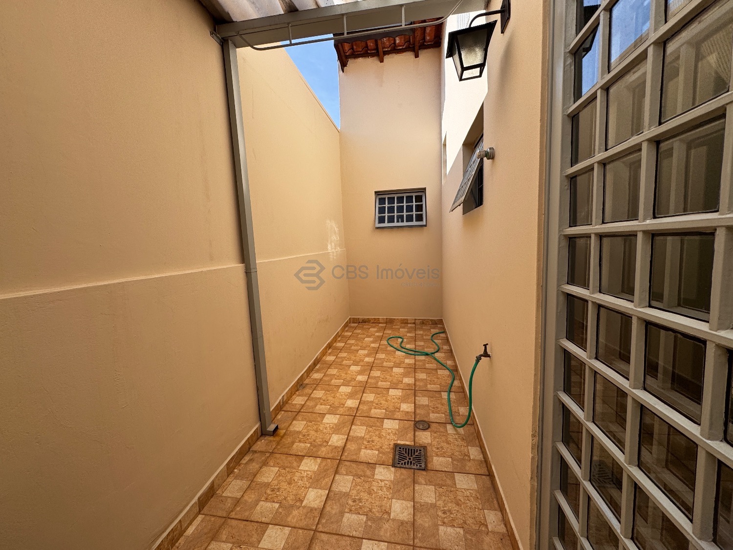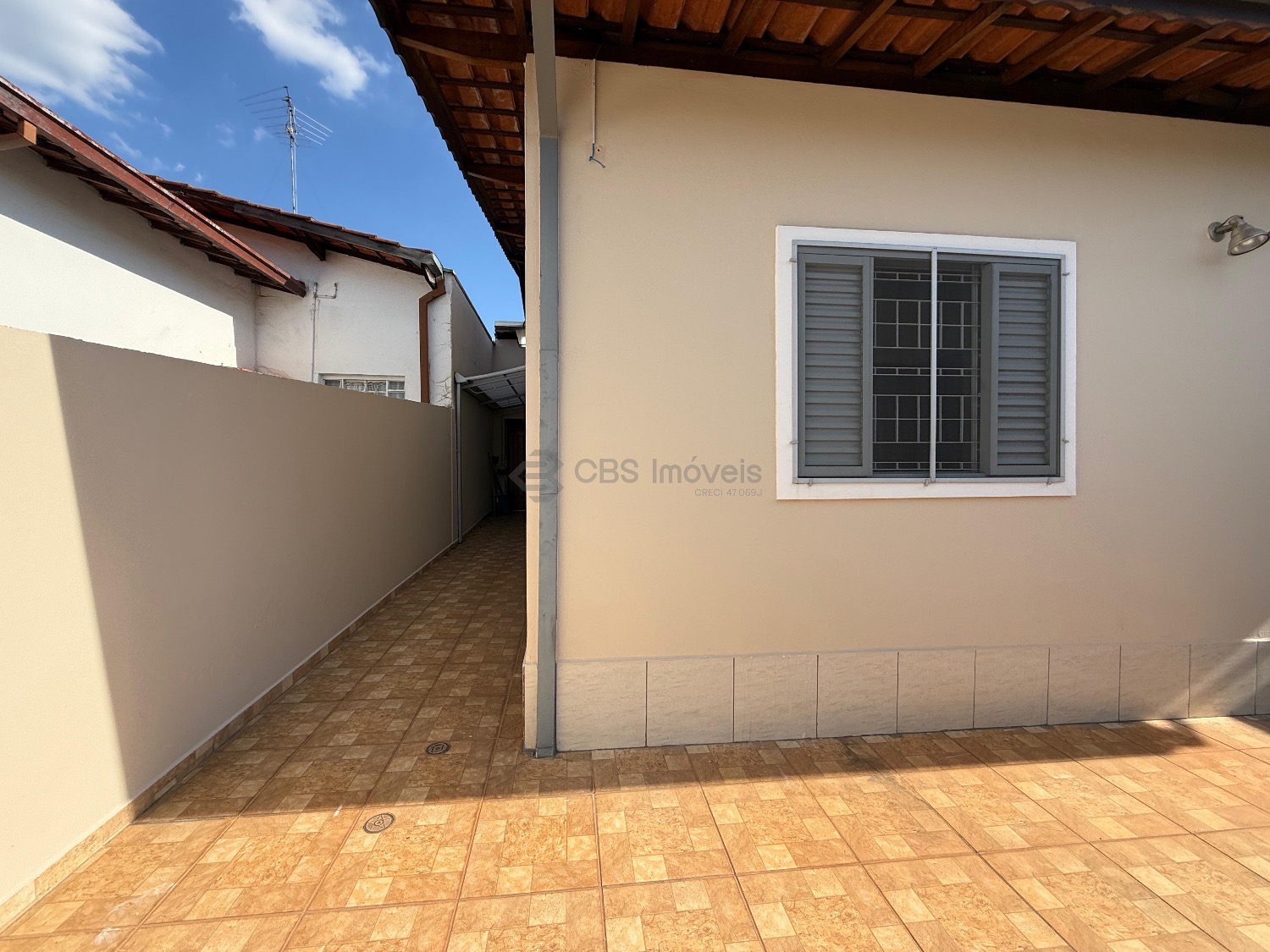 A casa possui corredor lateral com acesso a área de lazer. Nos fundos possui quarto e banheiro com amplo quintal.