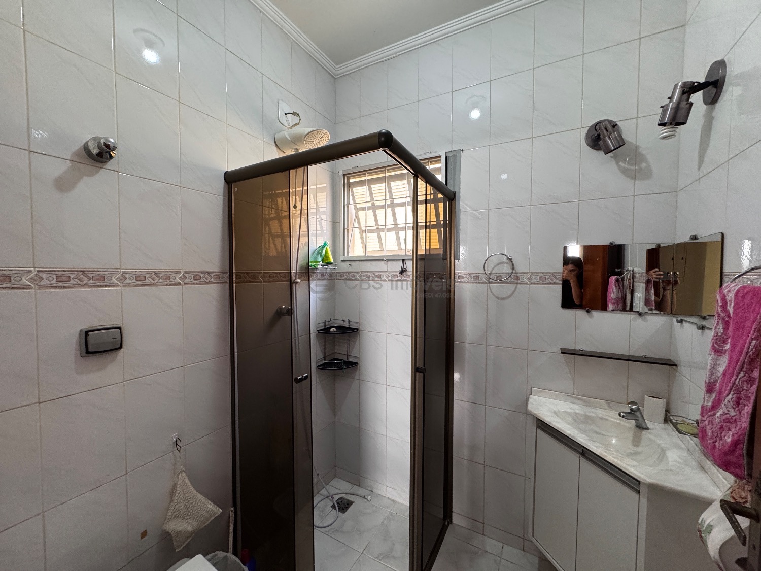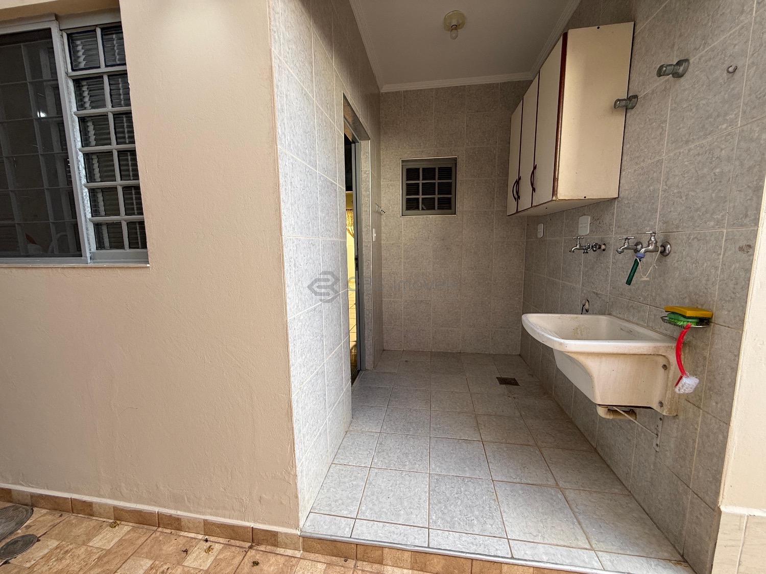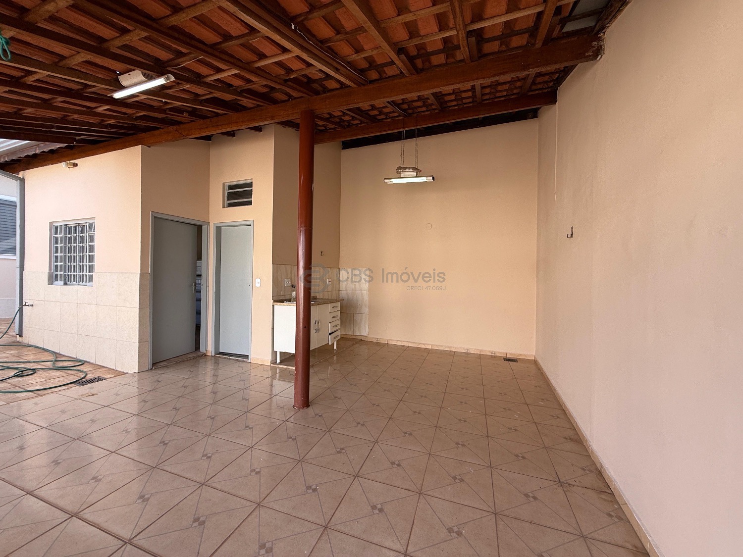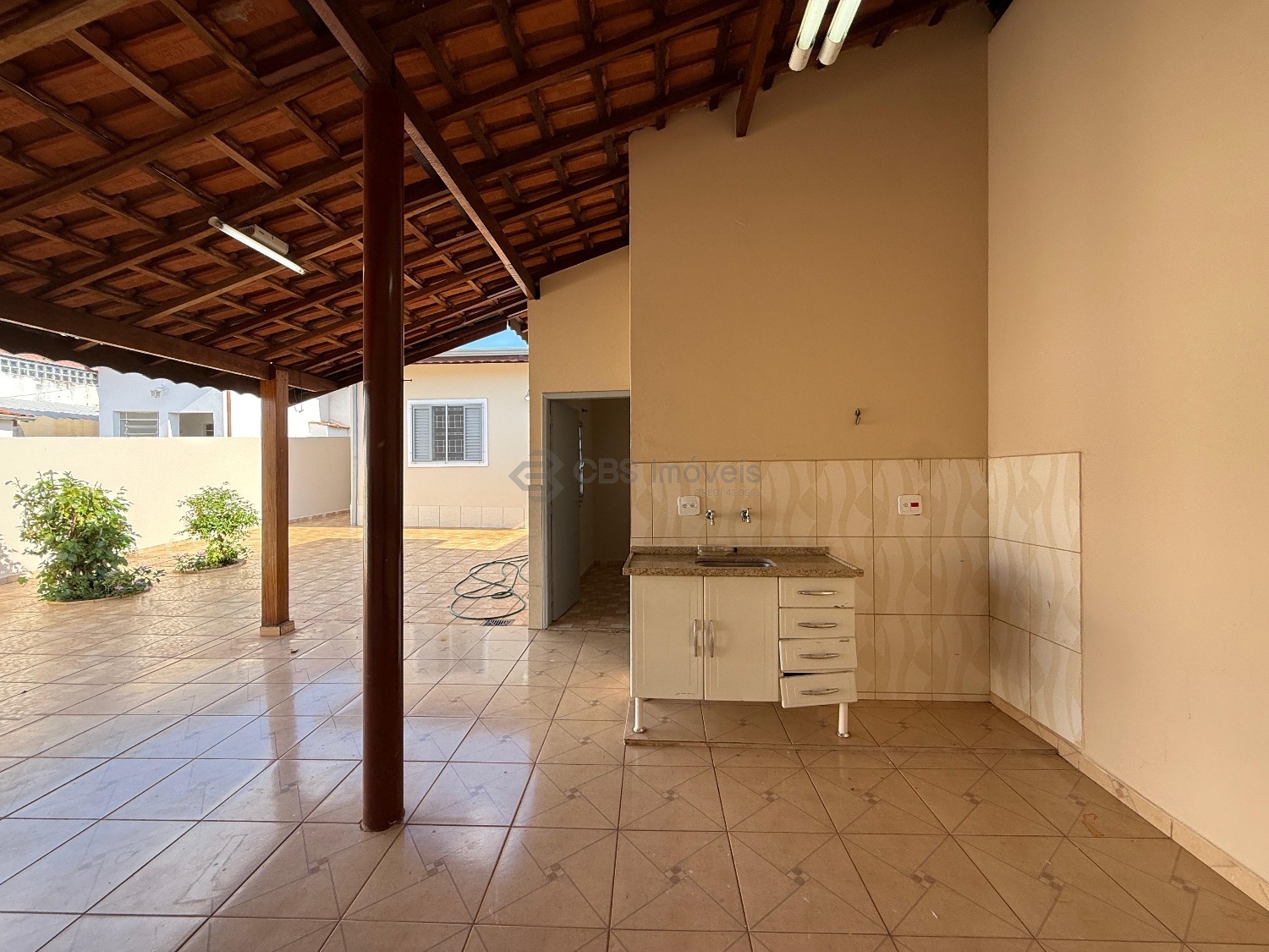 A casa possui corredor lateral com acesso a área de lazer. Nos fundos possui quarto e banheiro com amplo quintal.