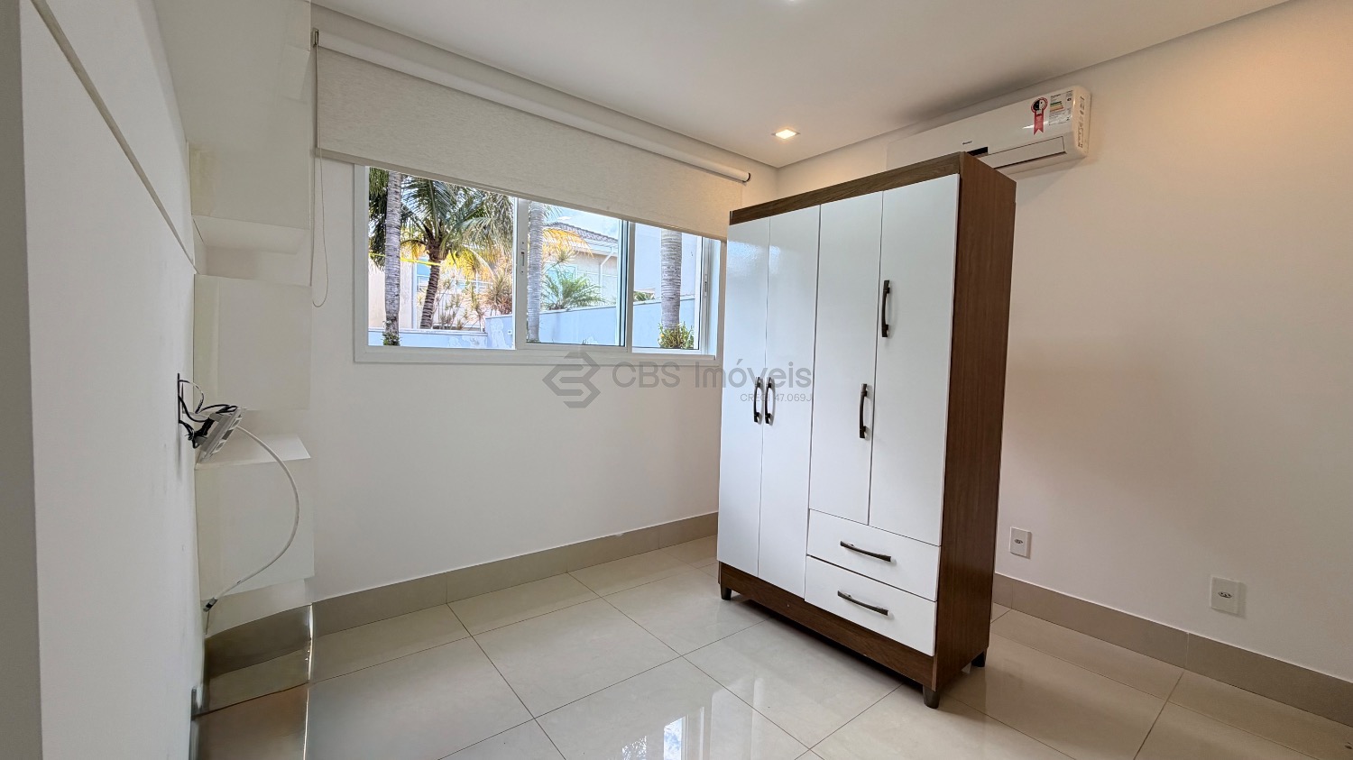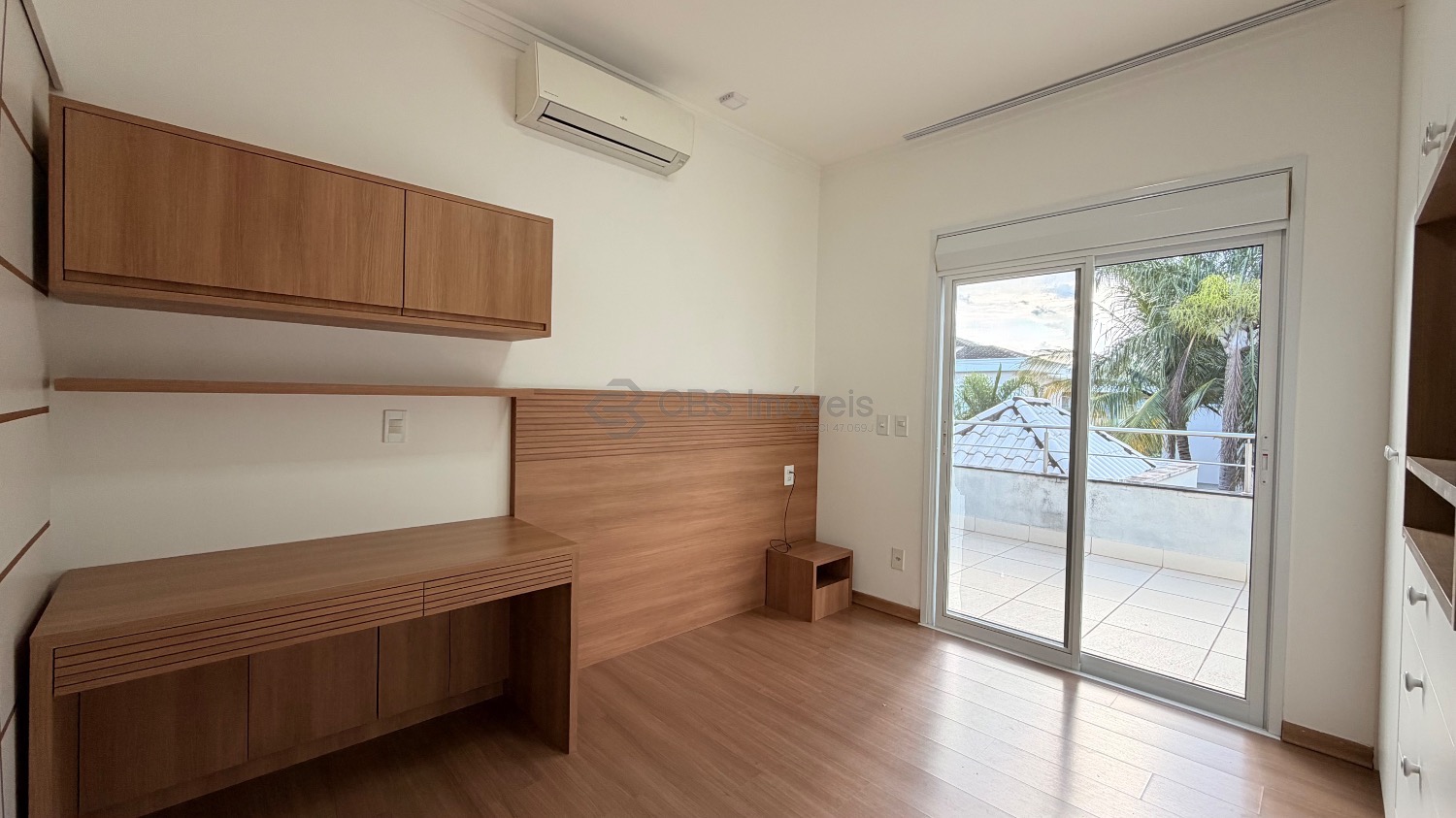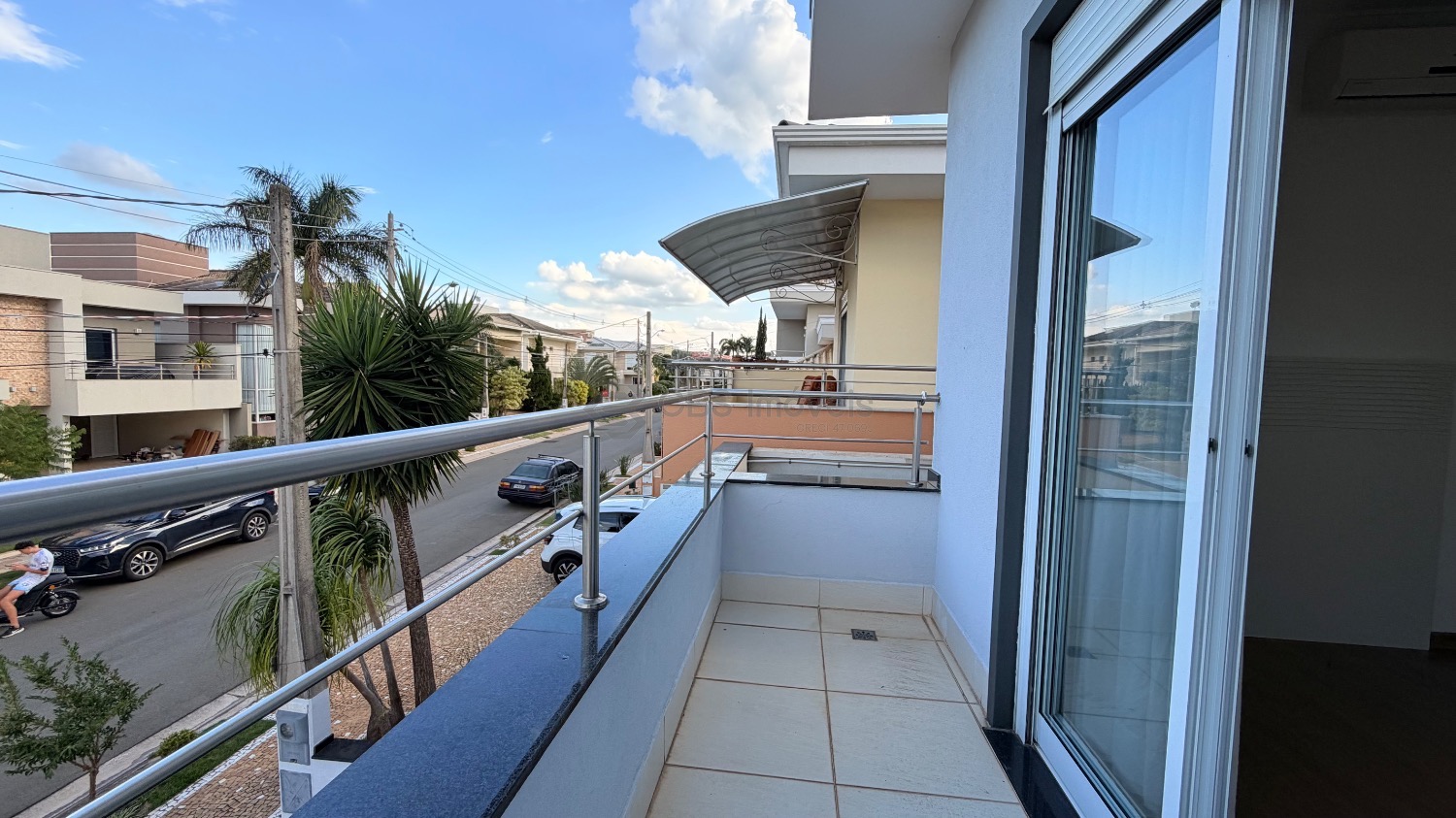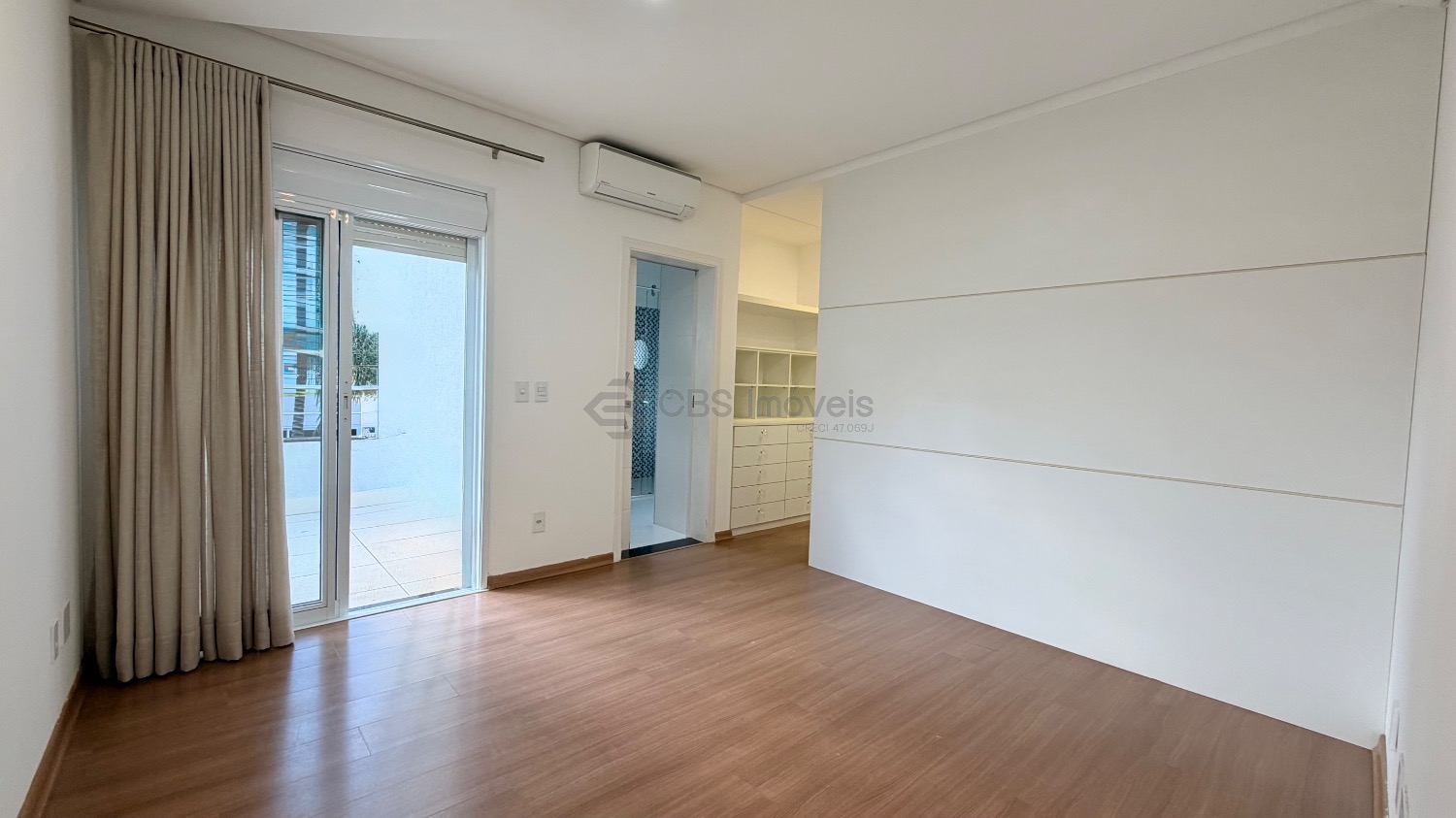 No piso superior temos 03 quartos que são suítes, sendo a master com closet, todas com persianas elétricas, varandas, ar condicionado/ tela mosquiteiro.