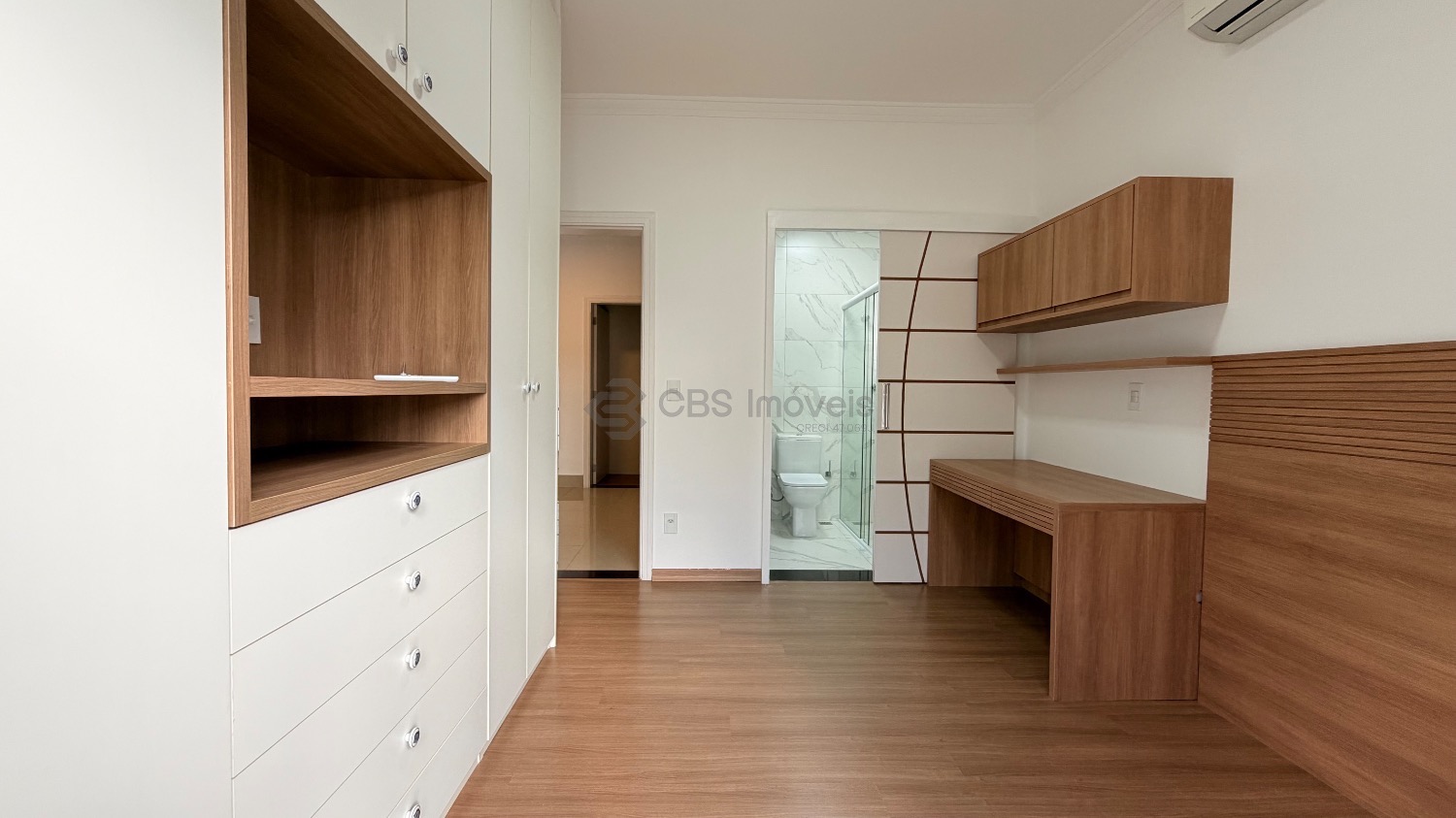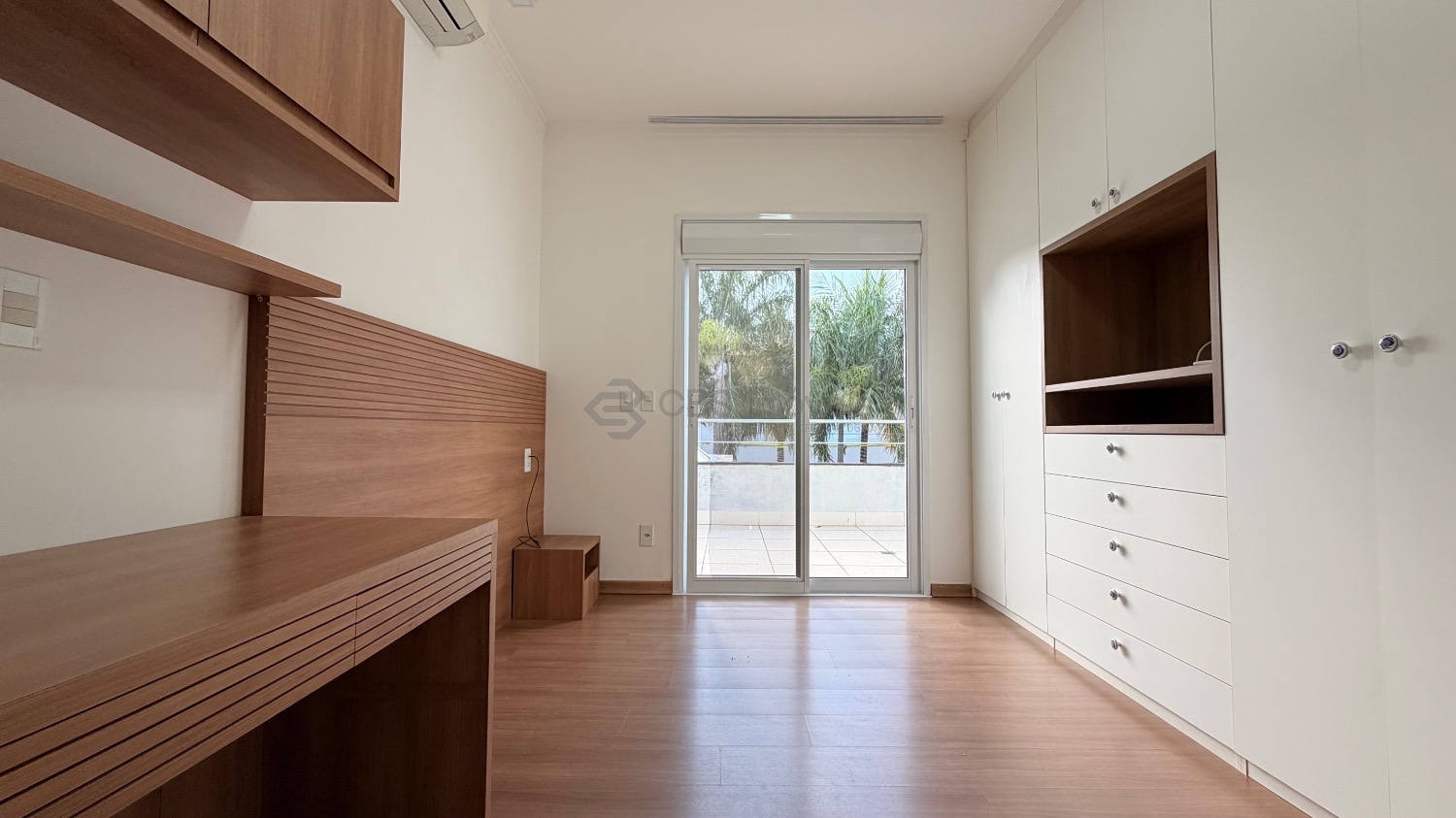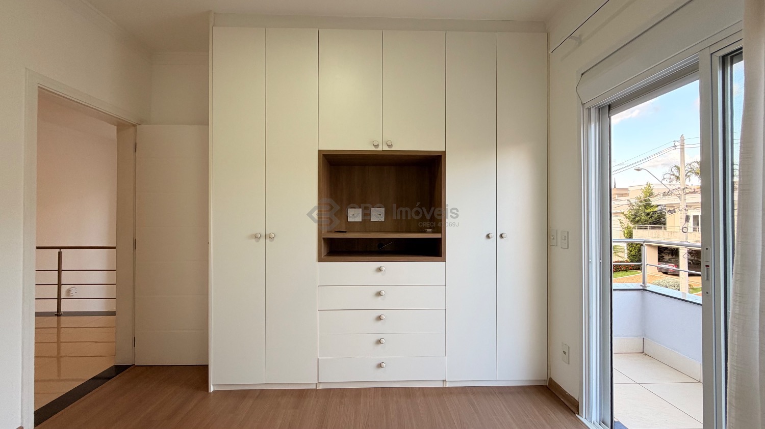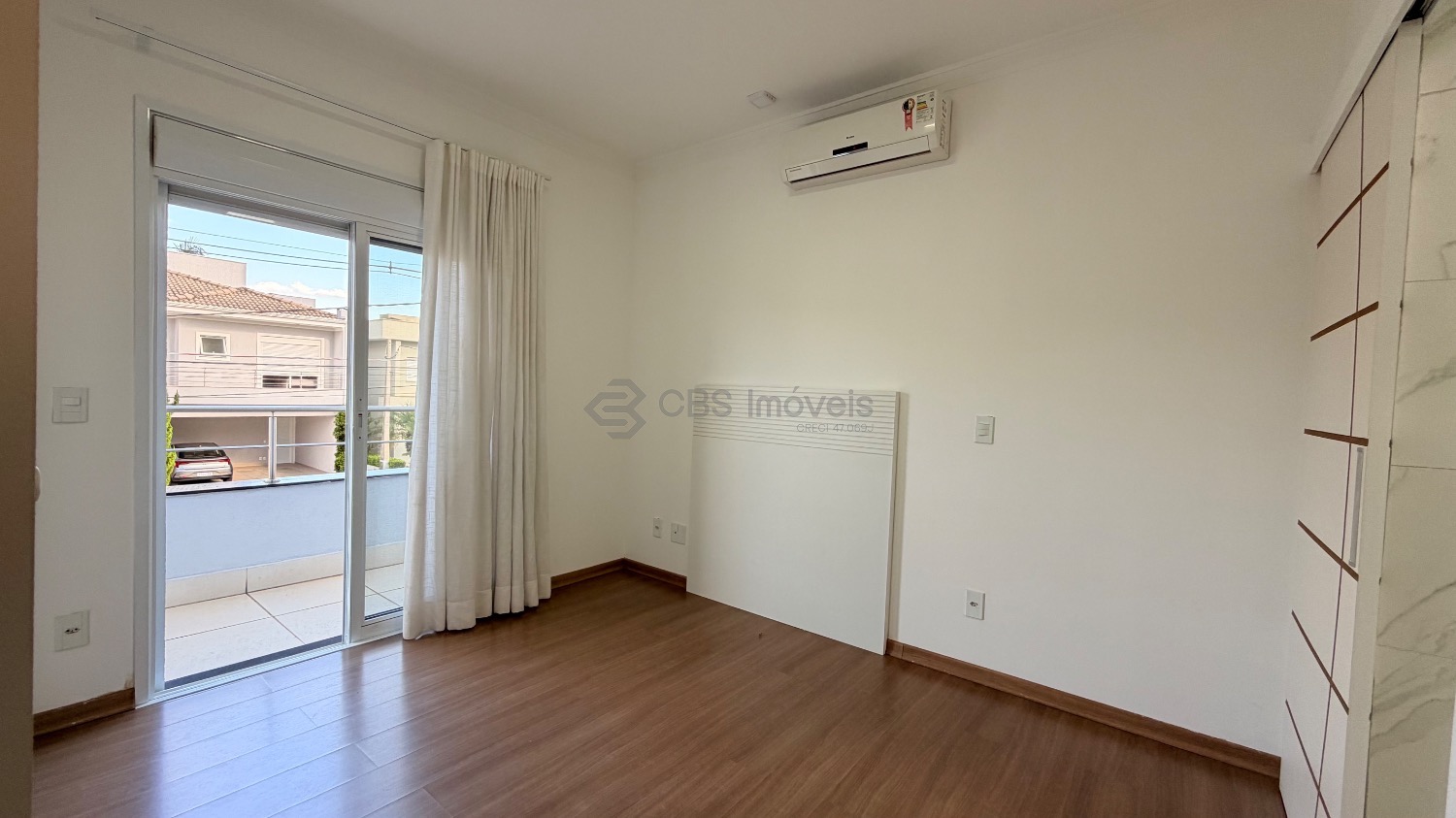 No piso superior temos 03 quartos que são suítes, sendo a master com closet, todas com persianas elétricas, varandas, ar condicionado/ tela mosquiteiro.