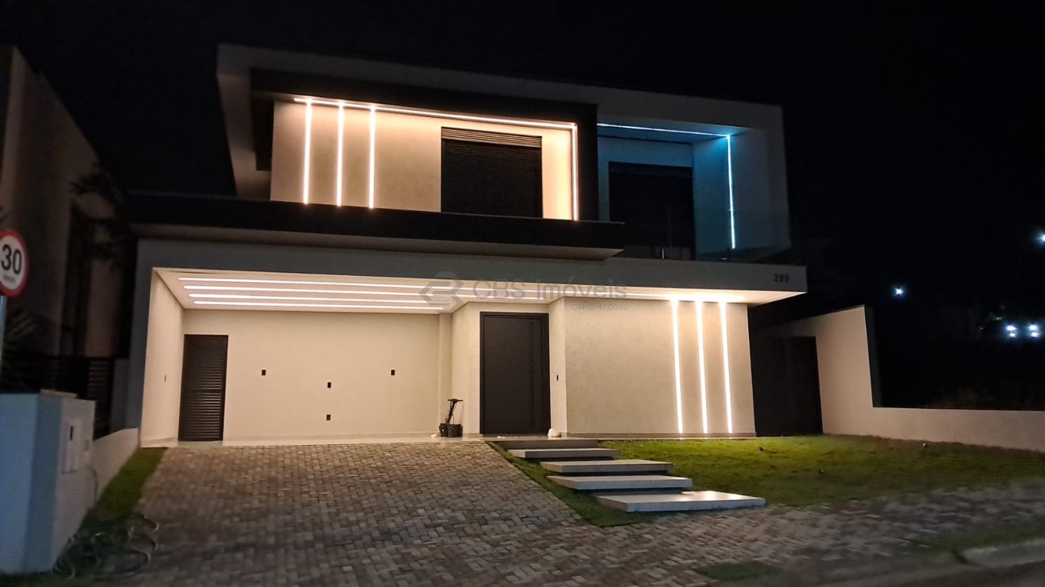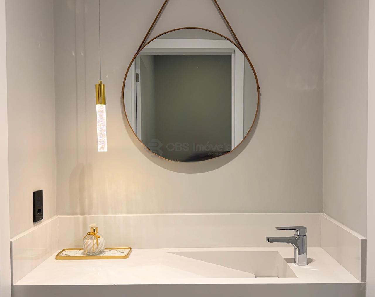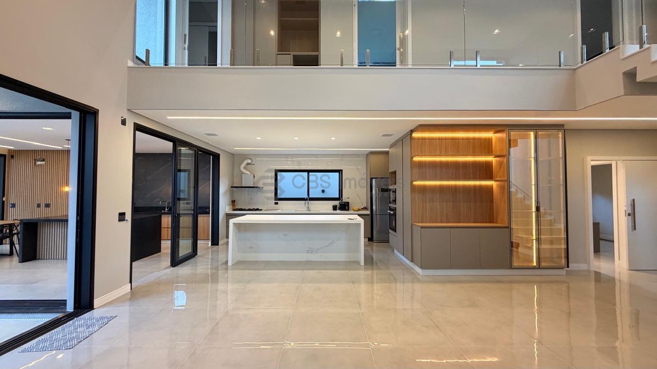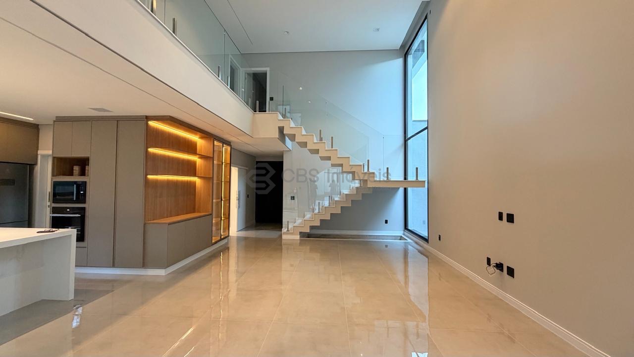 No térreo possui sala para 2 ambientes com pé direito duplo e muita integração. A cozinha é tipo americana completa com armários e ainda temos quarto/suíte reversível para home, escritório, lavabo, lavanderia e garagem para 4 carros.