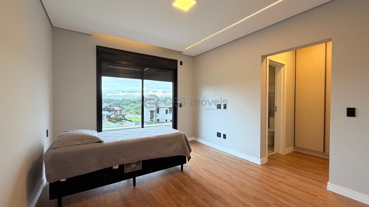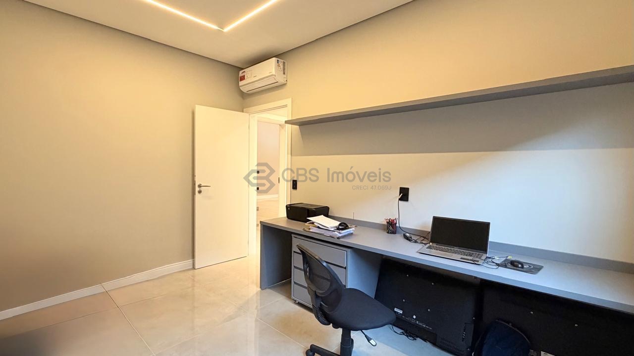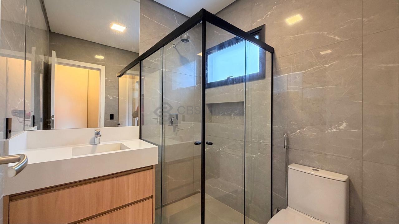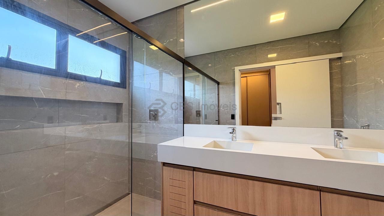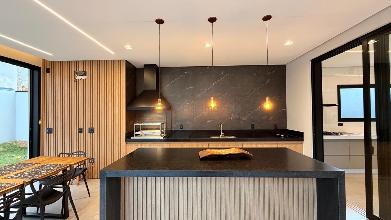 No térreo possui sala para 2 ambientes com pé direito duplo e muita integração. A cozinha é tipo americana completa com armários e ainda temos quarto/suíte reversível para home, escritório, lavabo, lavanderia e garagem para 4 carros.