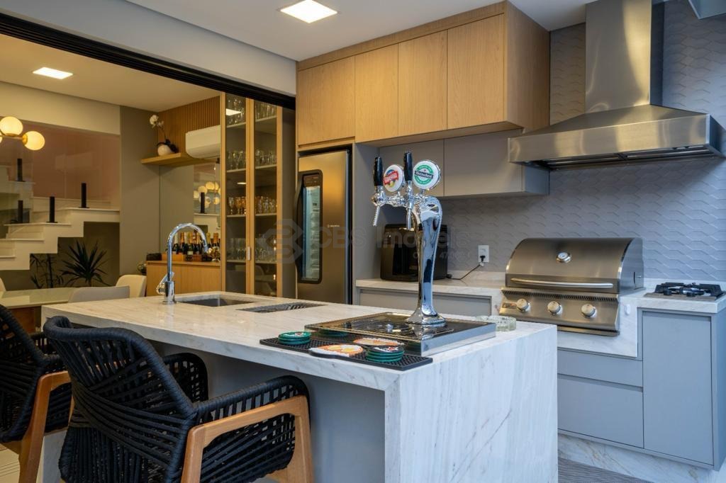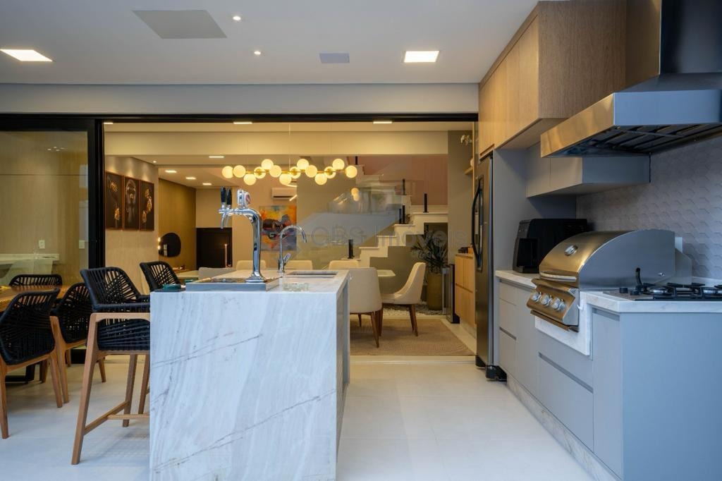 No térreo possui sala para 2 ambientes com muita integração. A cozinha é tipo americana completa com armários e eletrodomésticos embutidos, ainda temos