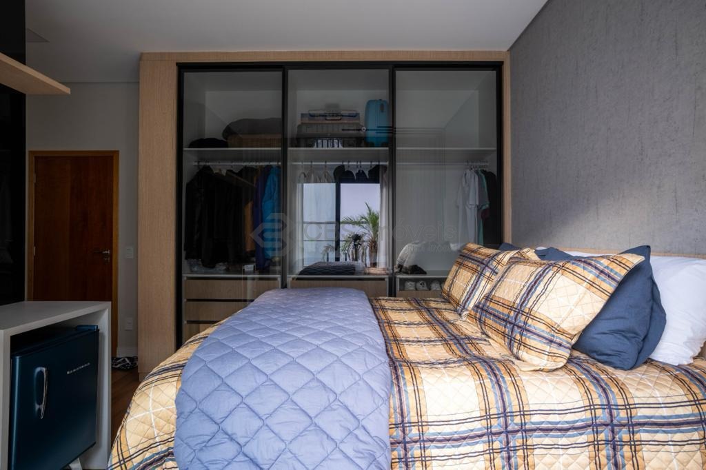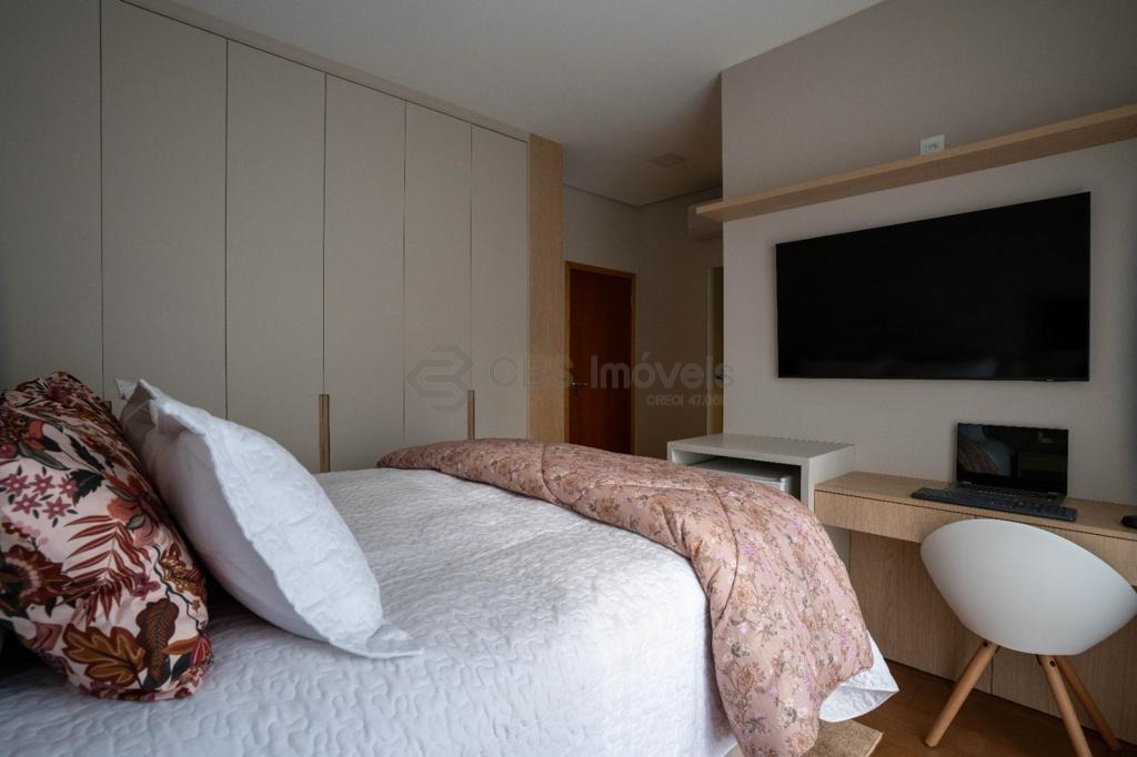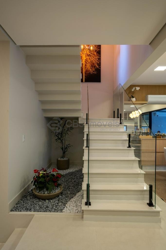 No piso superior temos 3 quartos que são suítes, sendo a master com closet, todas com persianas elétricas, varandas, ar condicionado/ tela mosquiteiro, além de escritório lindamente decorado.