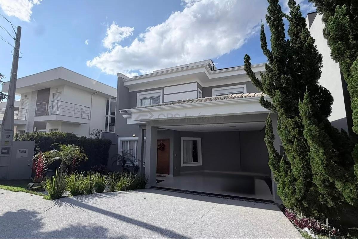 No pavimento térreo, o imóvel conta com sala de estar e jantar integradas, sala de cinema, jardim de inverno, além de uma cozinha moderna com ilha e torre quente, com eletrodomésticos instalados. Dispõe ainda de despensa, lavanderia e uma excelente área de lazer, com churrasqueira a carvão, pergolado de madeira, piscina aquecida e um lindo paisagismo.