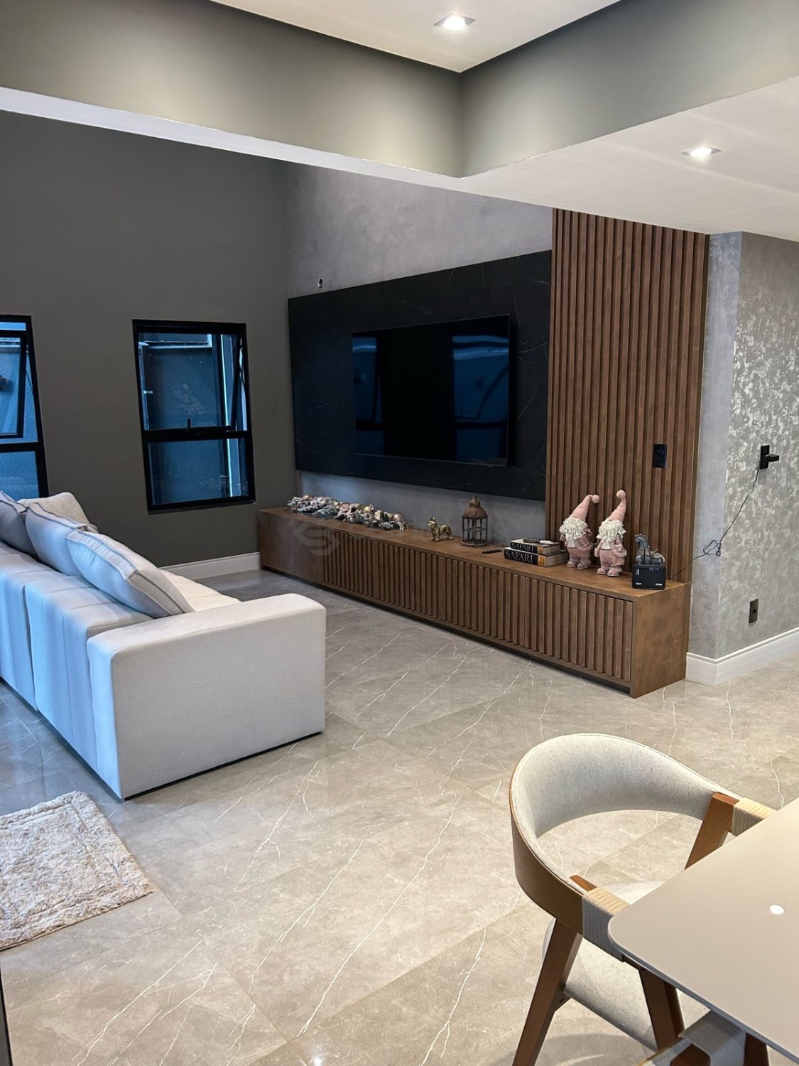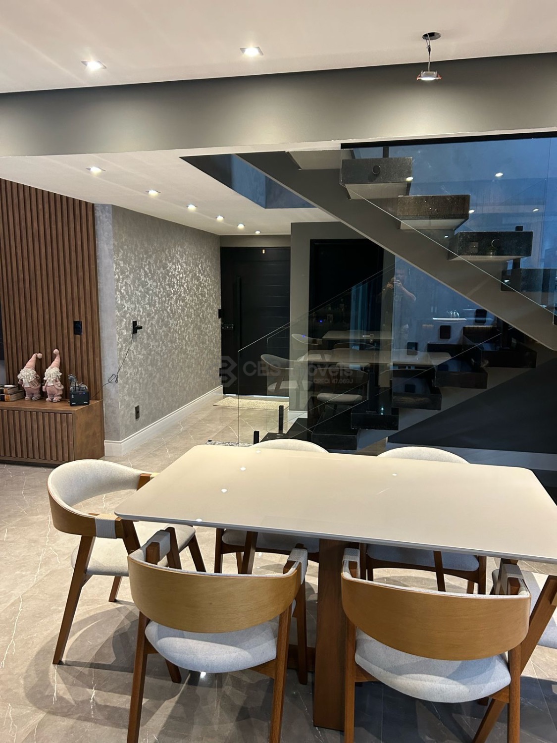 No térreo possui sala para 2 ambientes com pé direito duplo e muita integração. A cozinha é tipo americana completa com armários e ainda temos, escritório, lavabo, lavanderia e garagem para 4 carros.