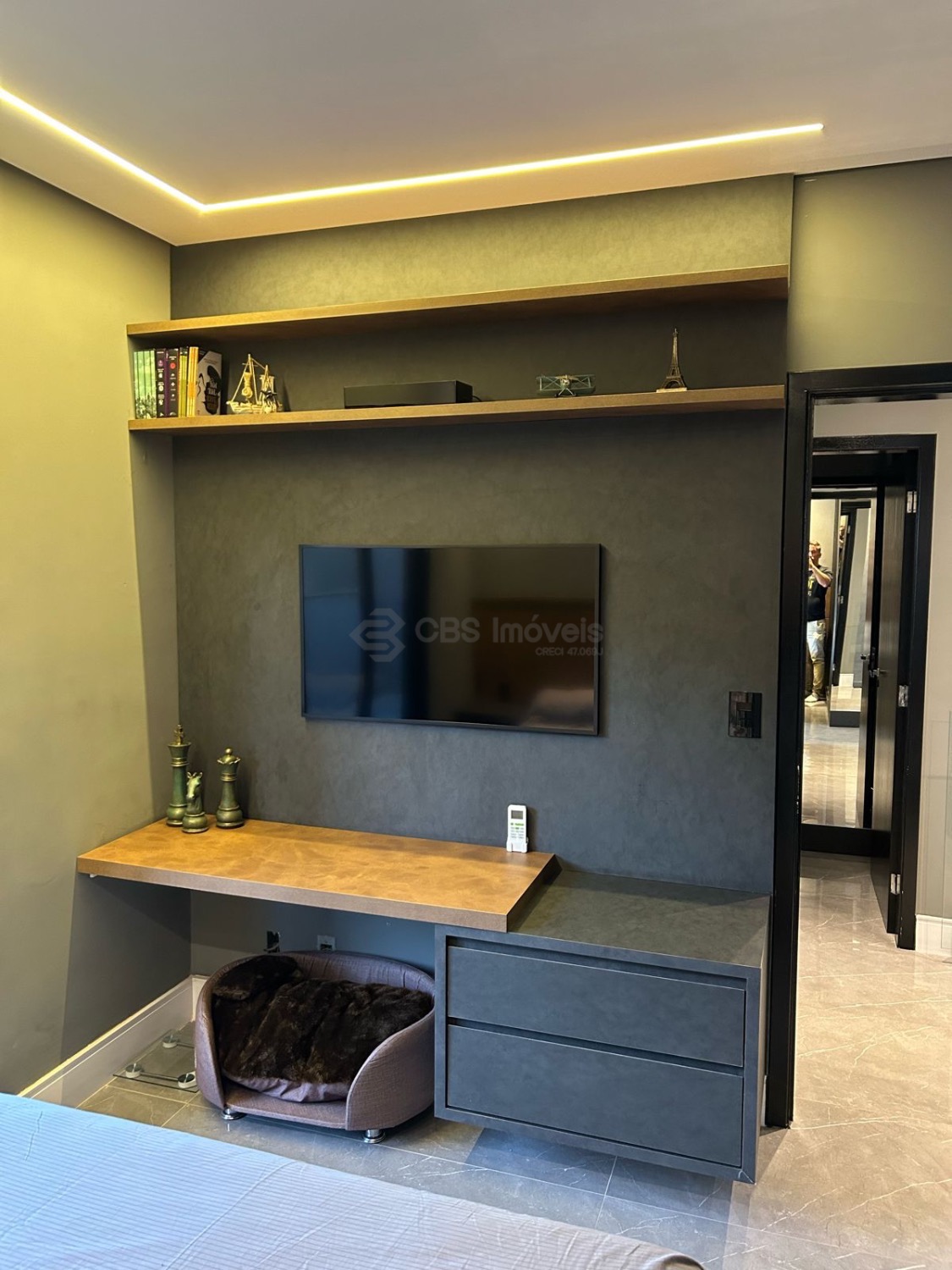 No piso superior temos 3 quartos sendo 1 suíte master com closet, todas com persianas elétricas e ar condicionado.