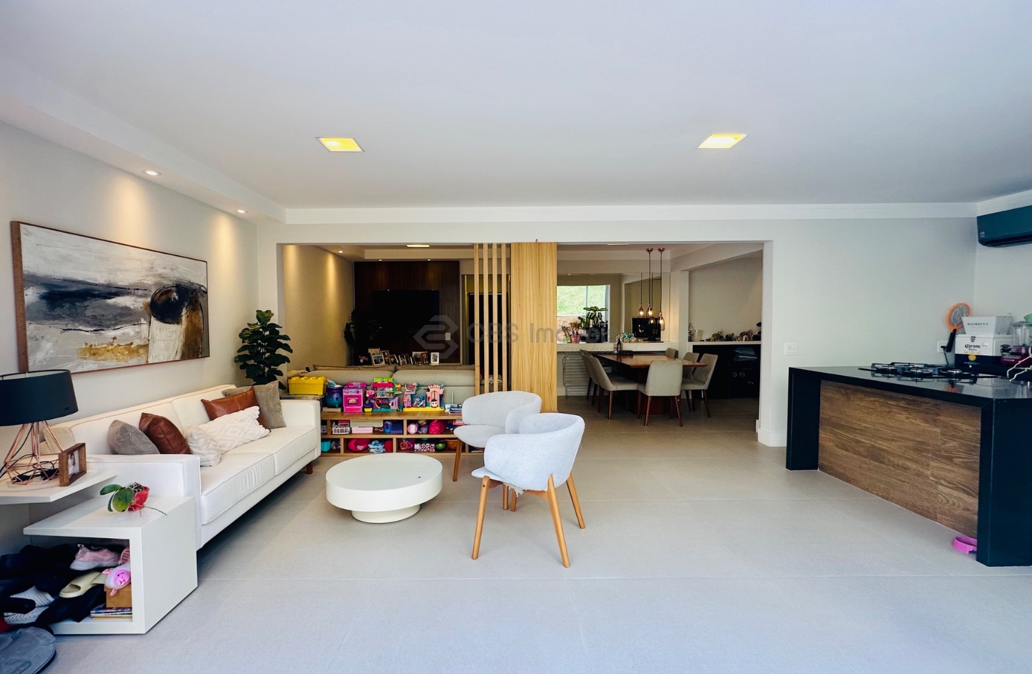 O imóvel possui três dormitórios, sendo uma suíte, além de uma cozinha moderna e sala com dois ambientes, proporcionando um espaço acolhedor e funcional para o dia a dia.