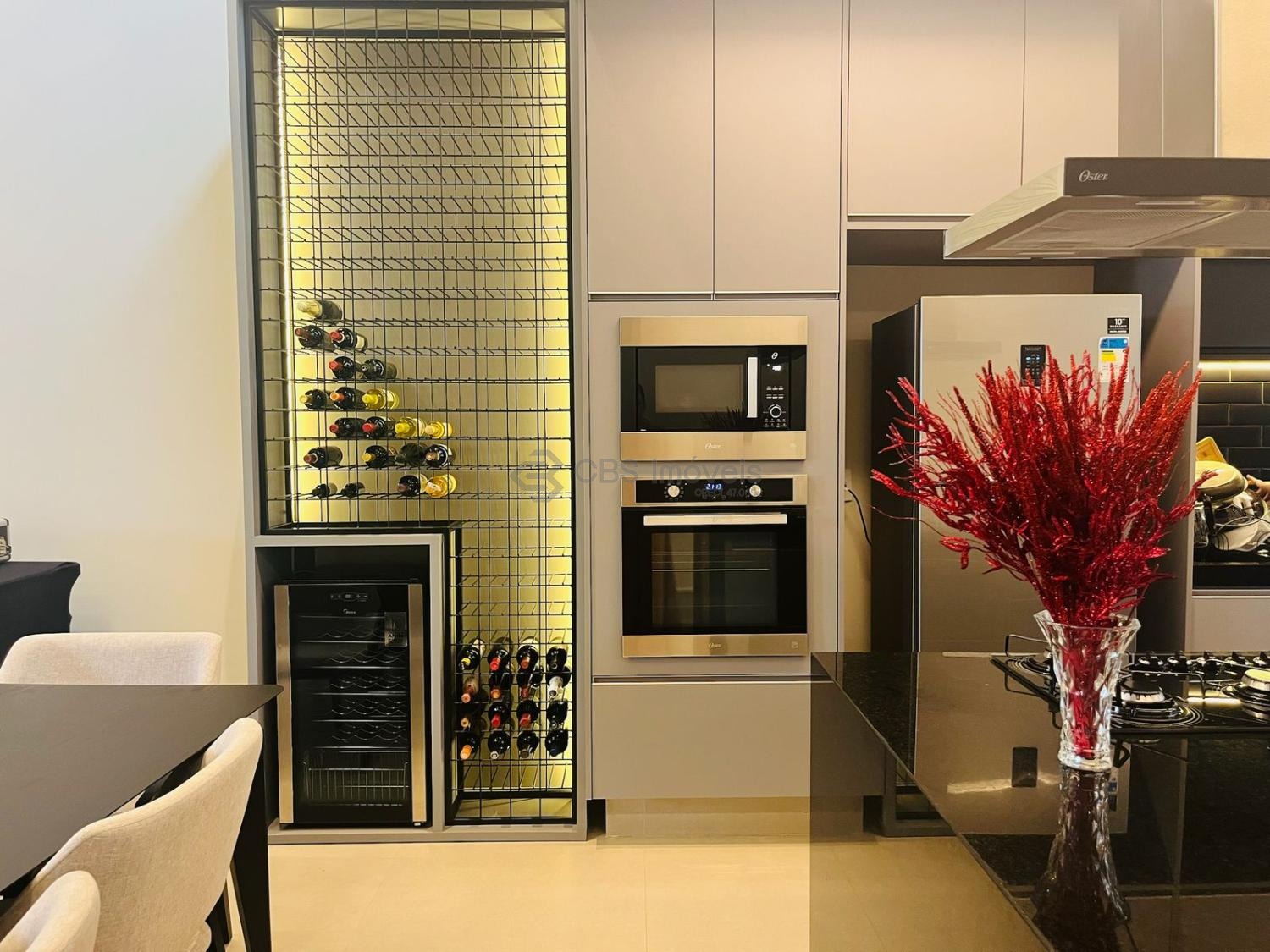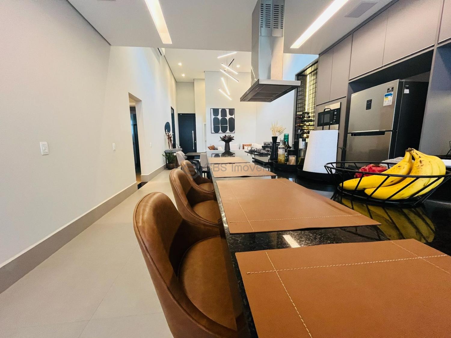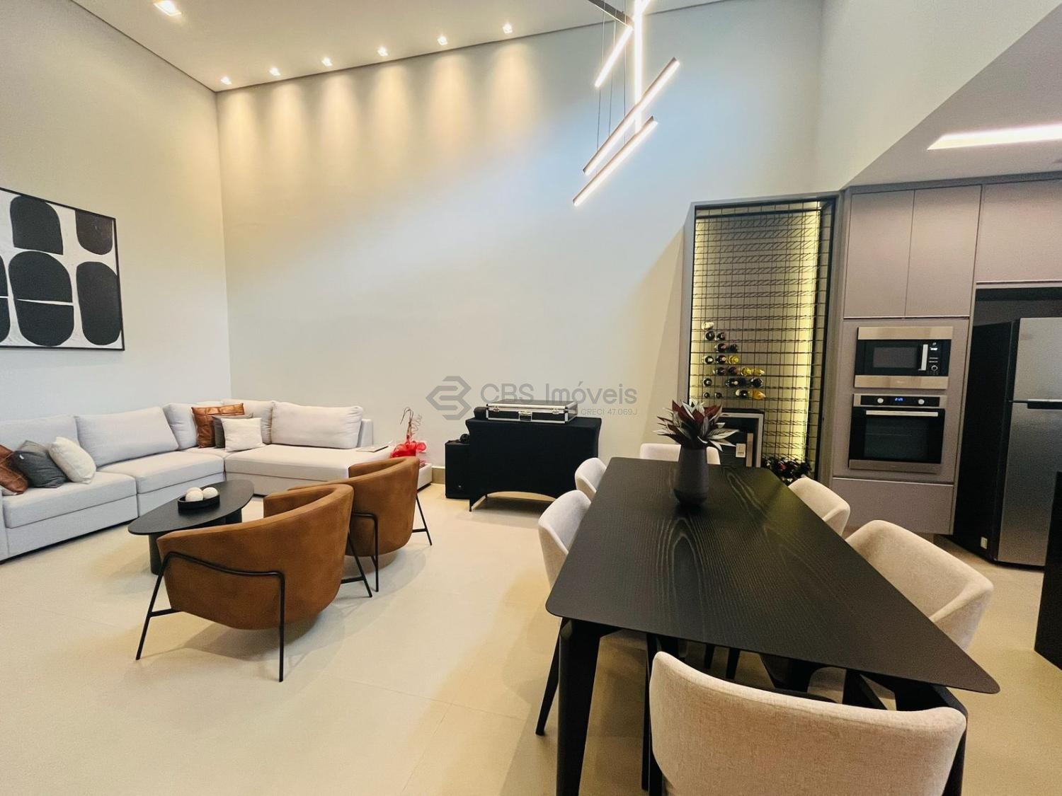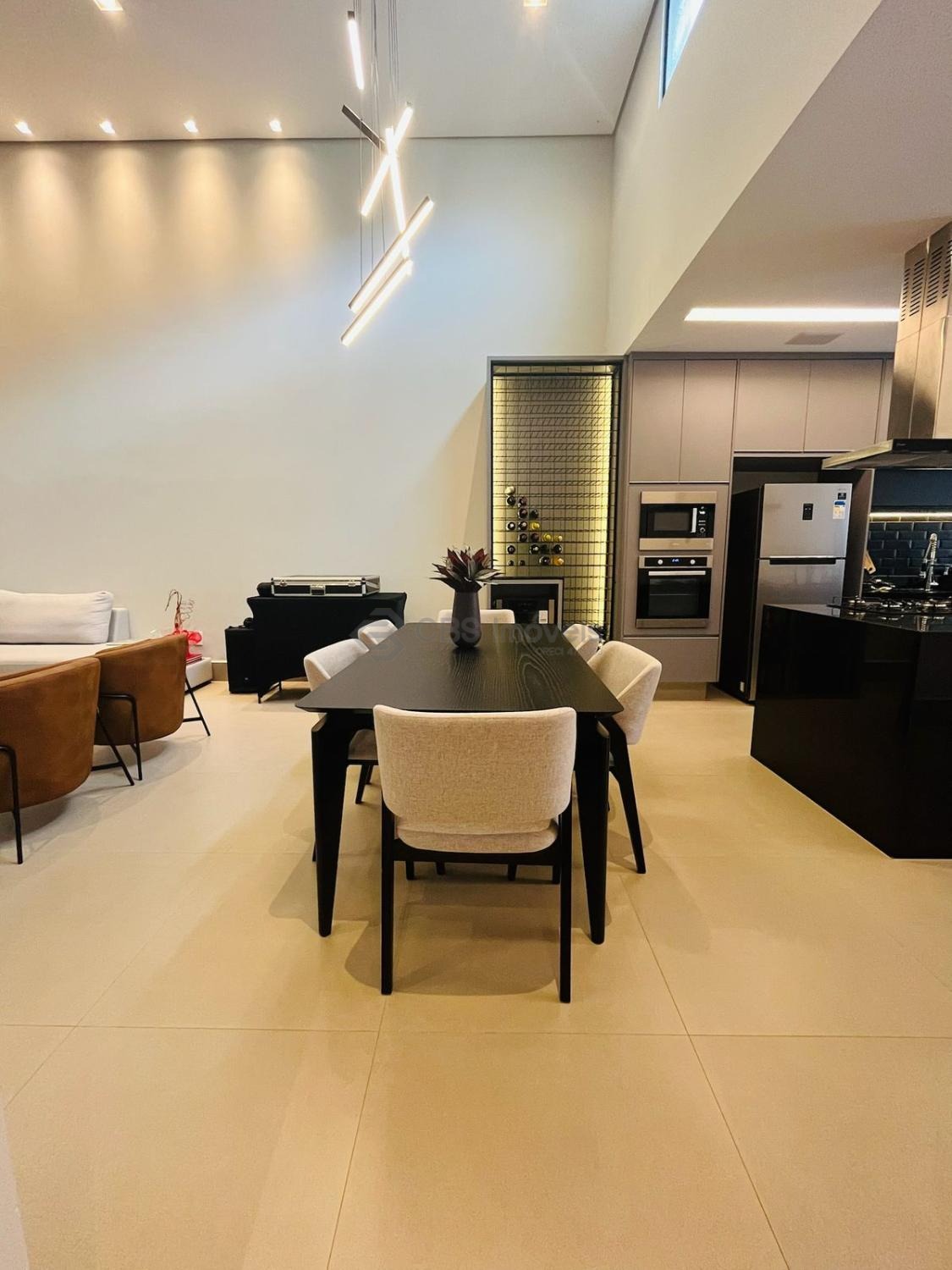 Possui uma linda cozinha tipo americana completa de armários, sala para 2 ambientes e, escritório, sala de tv e lavabo.