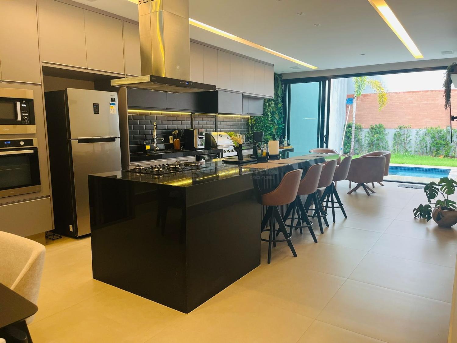 O lazer é completo com gourmet com churrasqueira, banheiro de apoio, piscina e quintal