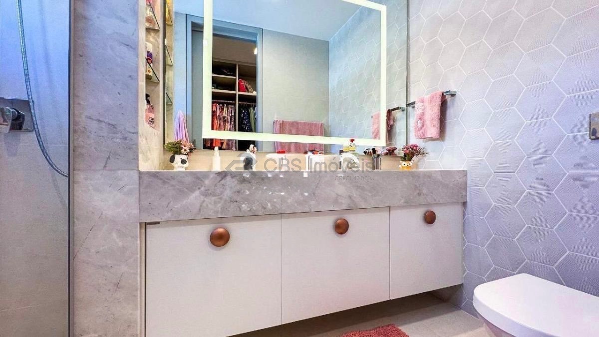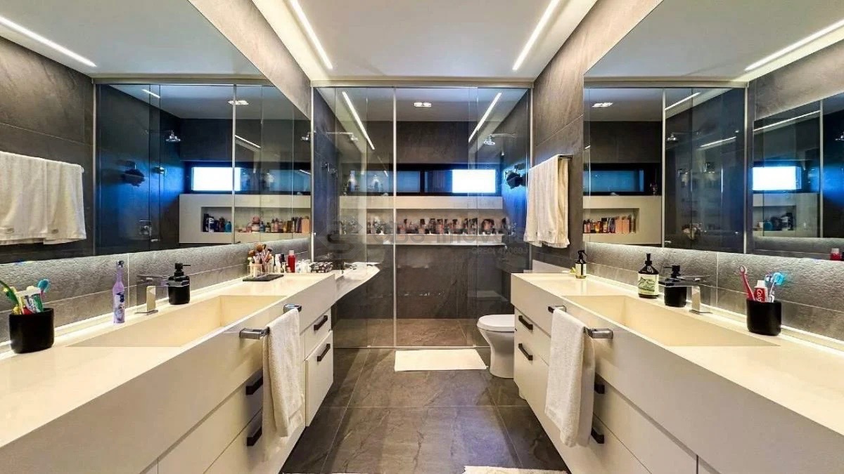 No piso superior, dispõe de quatro maravilhosas suítes, todas com closet e varanda. A suíte master é espetacular, com espaços amplos e excelente iluminação natural. Conta também com home office com linda vista e uma generosa varanda de convivência íntima para a família.