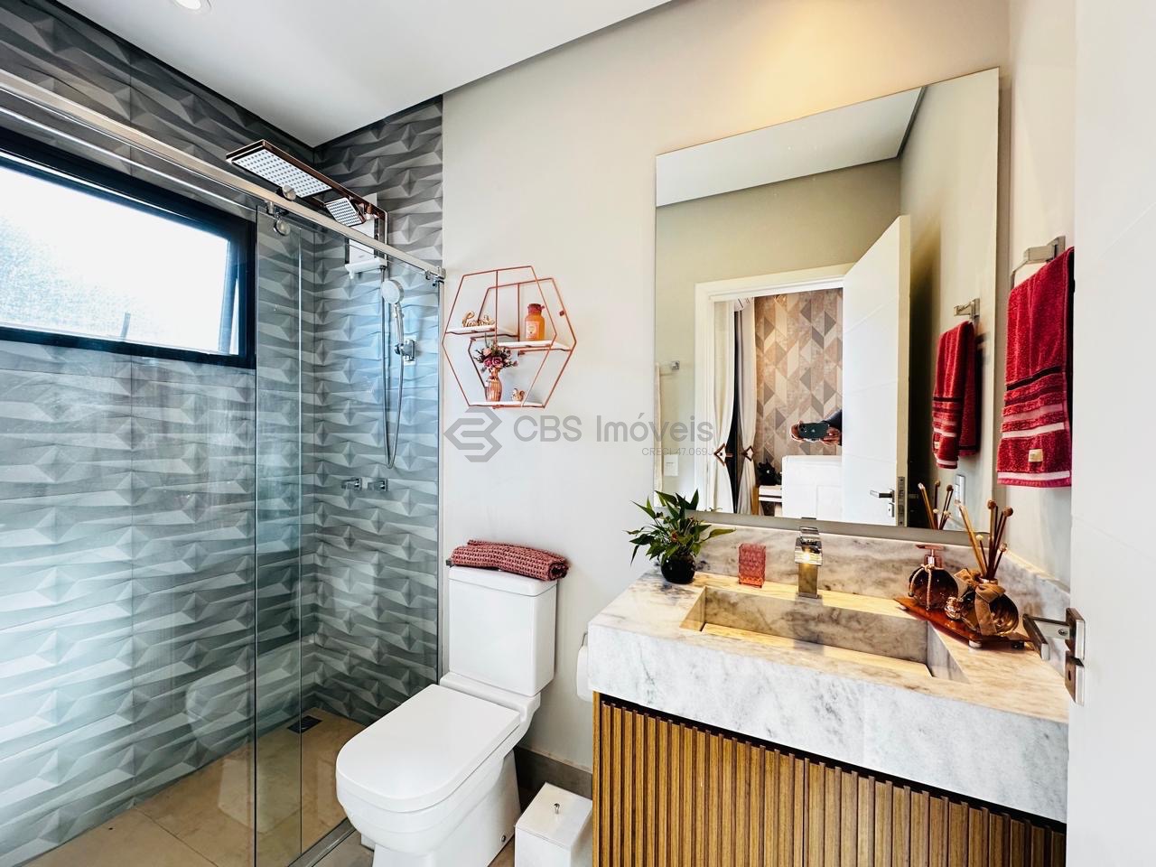 A casa conta com 3 quartos todos suítes privativas com sacada e vista para o paisagismo e para a piscina aquecida, sendo a suíte master um verdadeiro refúgio com closet. Há ainda possibilidade de ampliação para mais 1 quartos.