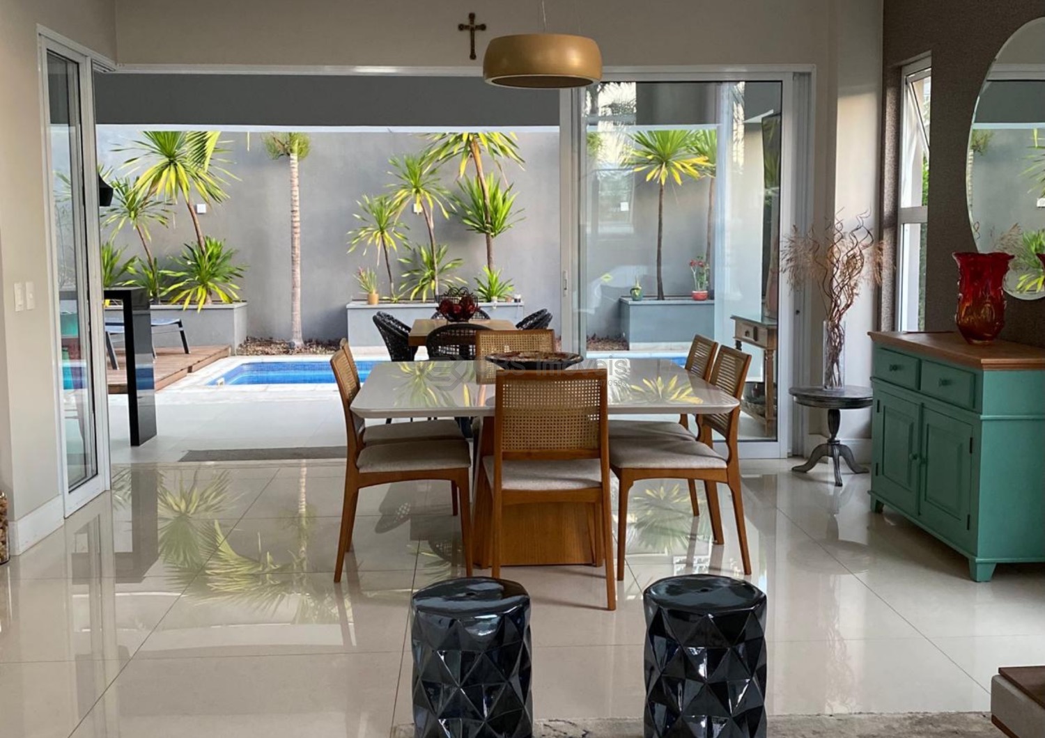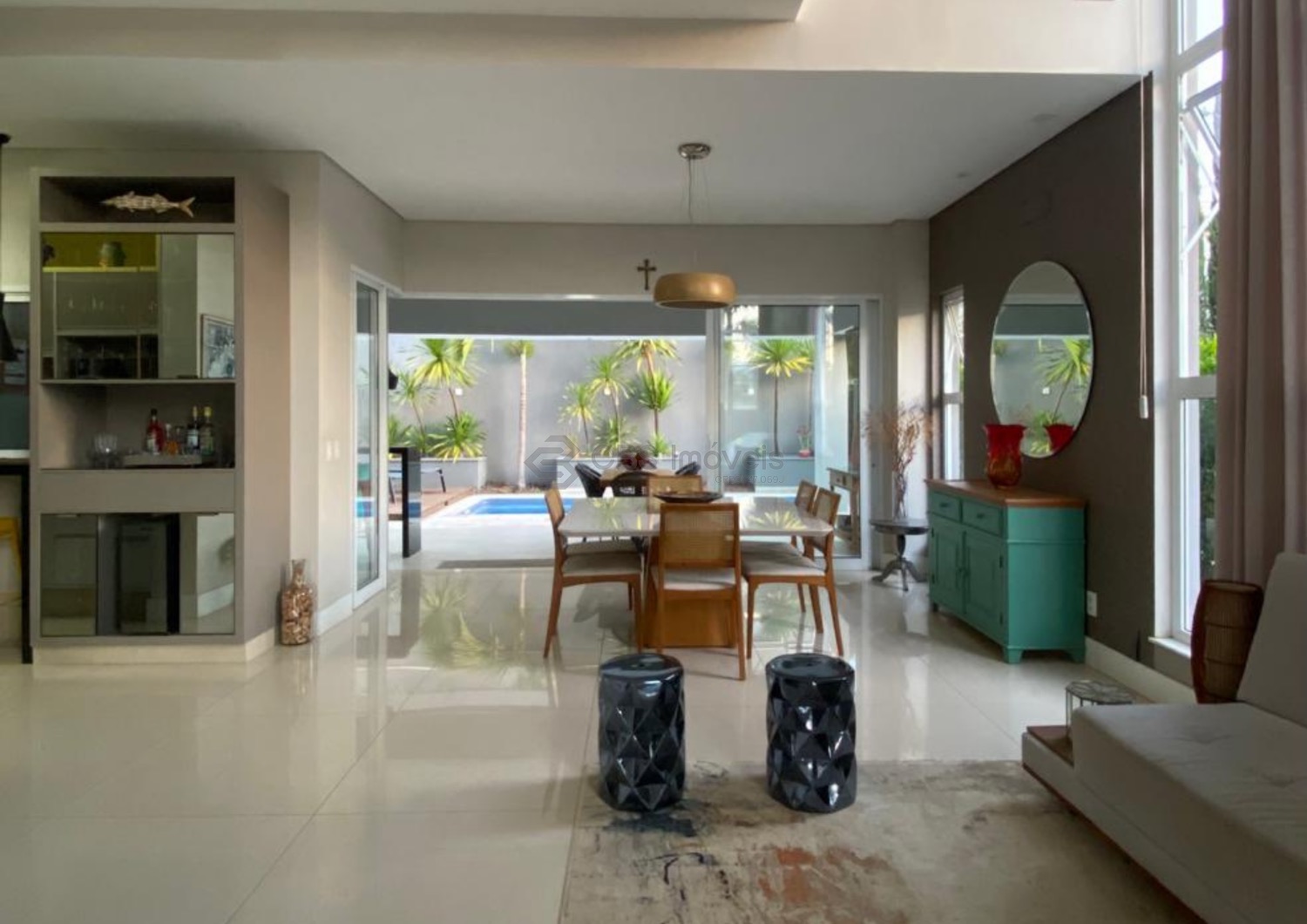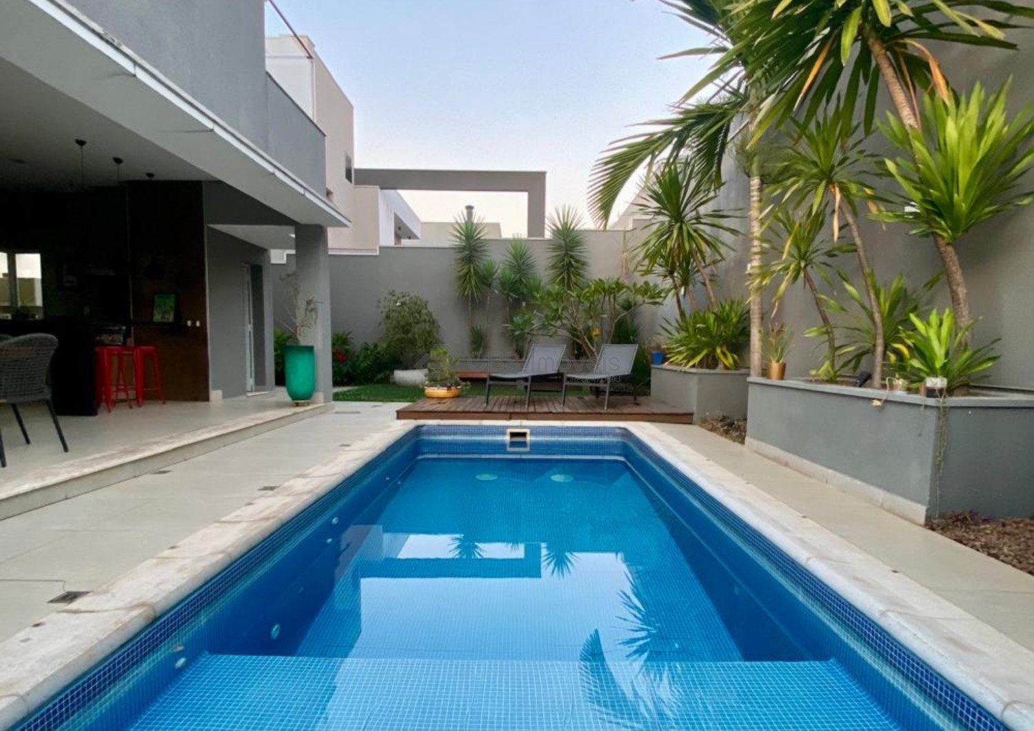 A residência dispõe de aquecimento solar e usina fotovoltaica, reforçando a proposta de eficiência energética, economia e sustentabilidade.
