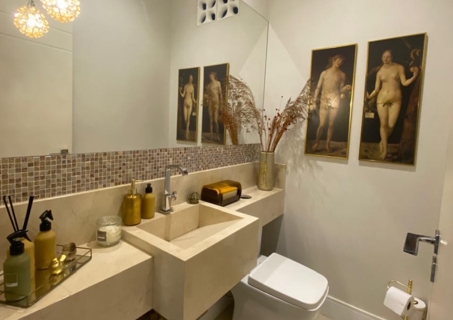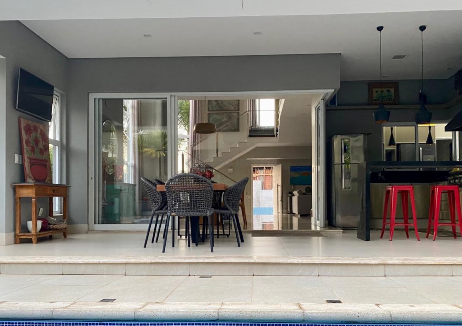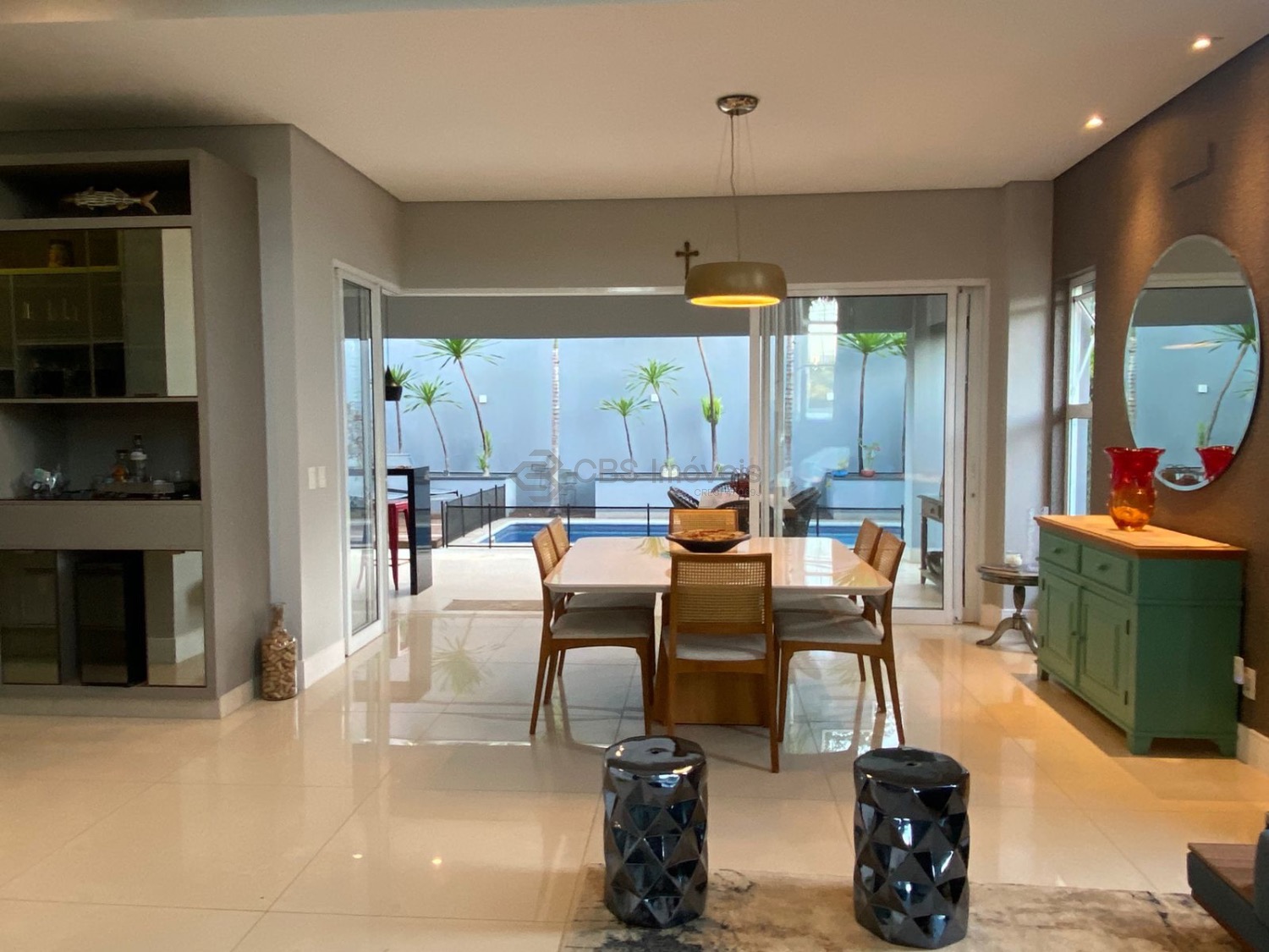 A residência dispõe de aquecimento solar e usina fotovoltaica, reforçando a proposta de eficiência energética, economia e sustentabilidade.