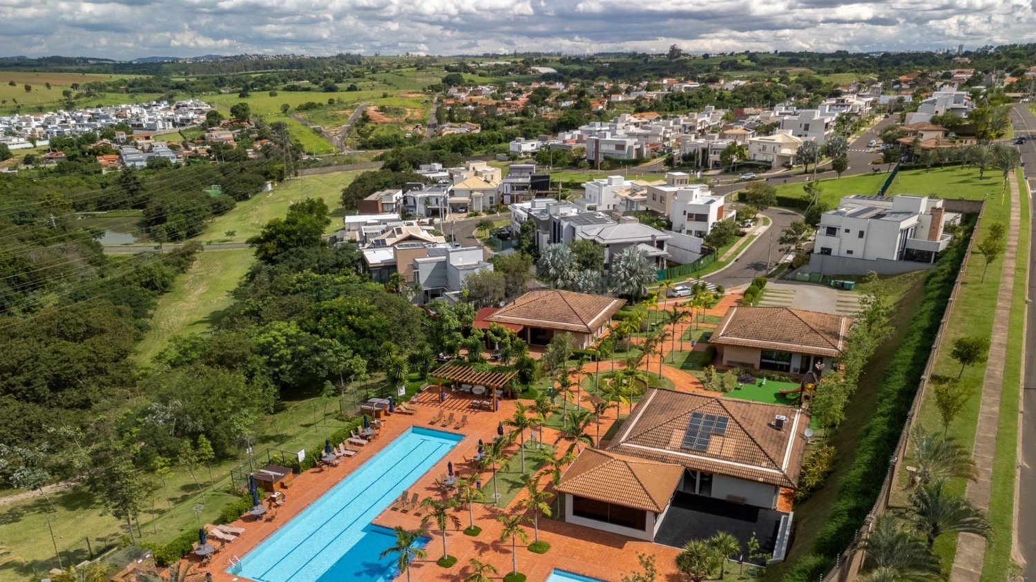 O condomínio oferece estrutura completa de lazer e segurança 24 horas, com piscinas adulto e infantil, academia equipada, salão de festas, espaços gourmet, quadras esportivas, campo sintético, sauna, ofurôs, áreas verdes preservadas e lago para pesca esportiva. A localização é estratégica, próxima a shoppings, escolas e principais rodovias, proporcionando mobilidade e praticidade para a rotina.