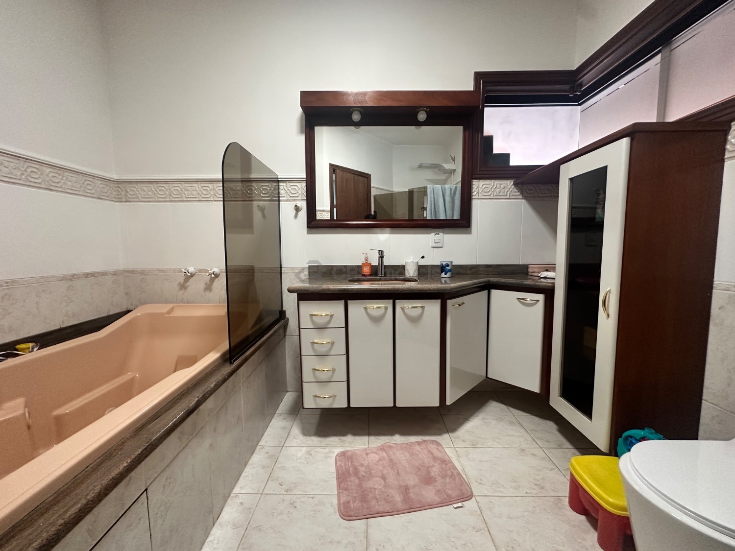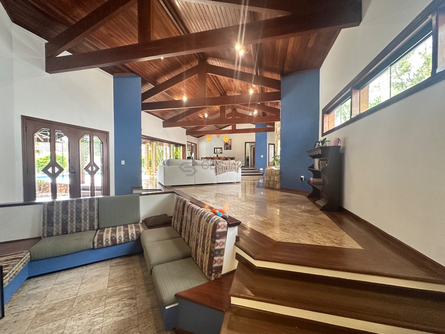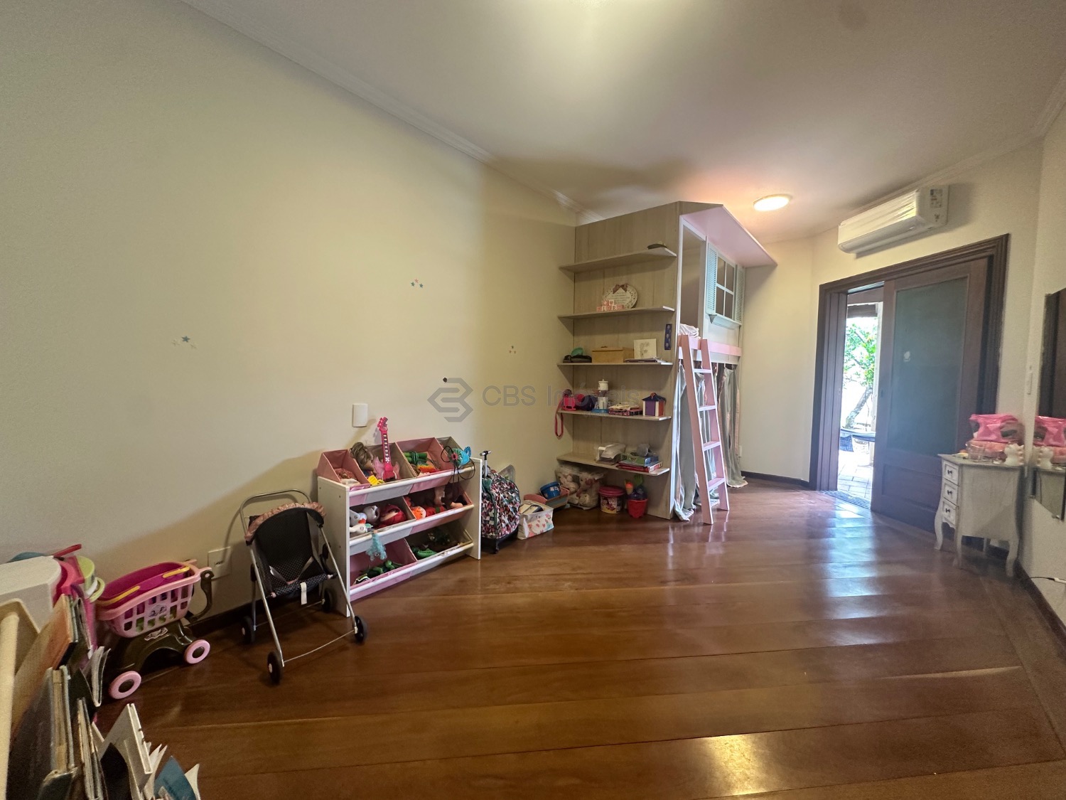 A cozinha é convidativa e espaçosa, pensada para quem gosta de viver a casa no dia a dia, e se conecta à sala de almoço, criando um ambiente perfeito para momentos em família. O imóvel ainda conta com lavabo, escritório, depósito, vestiários e dormitório de apoio para auxiliar, trazendo praticidade para a rotina.