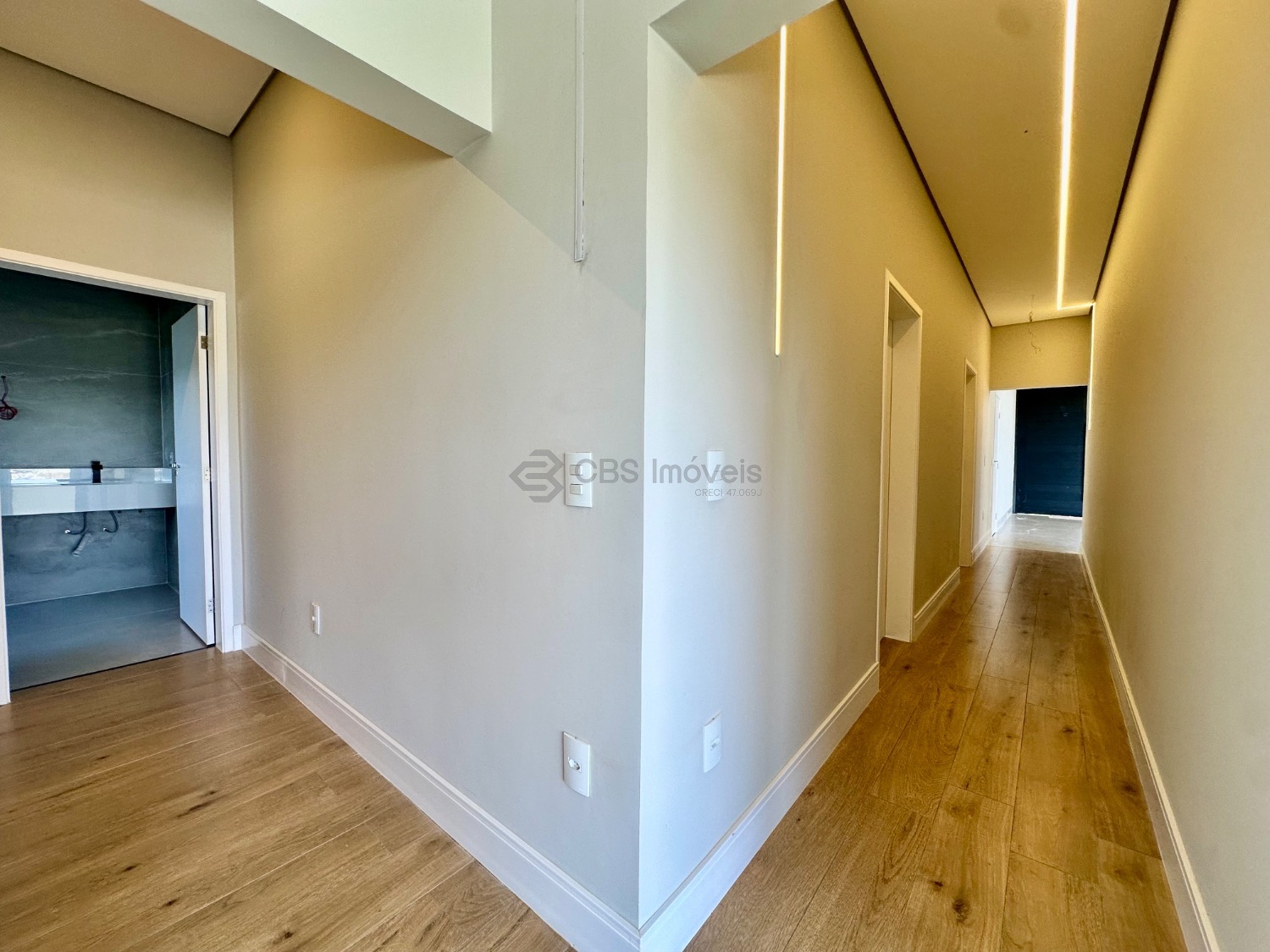 A casa conta ainda com iluminação em LED em diversos pontos, valorizando a arquitetura e proporcionando uma atmosfera moderna e aconchegante. Com 243,69 m² de construção em um terreno de 526,83 m², oferece também quatro vagas de garagem e uma excelente distribuição dos espaços.