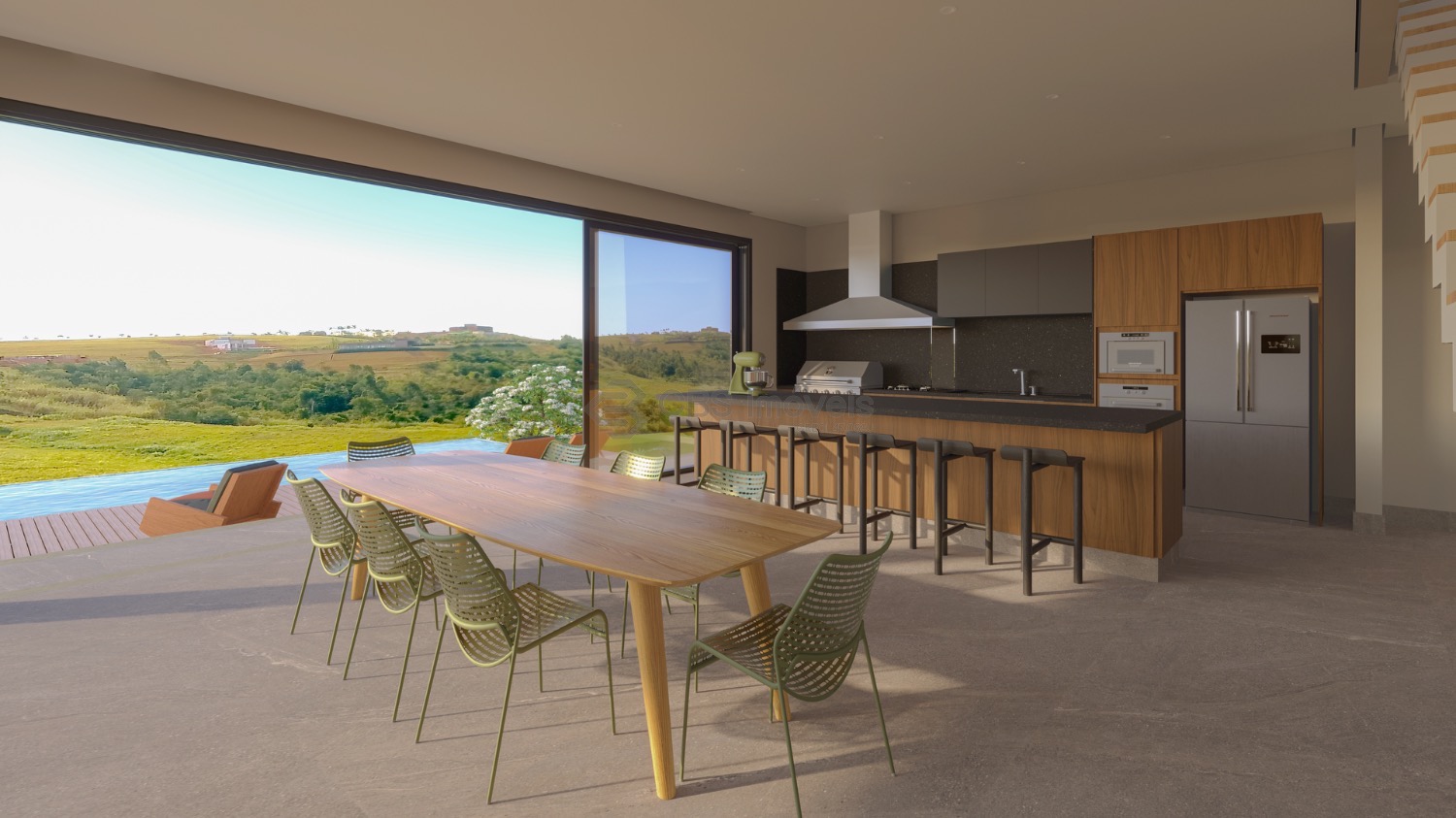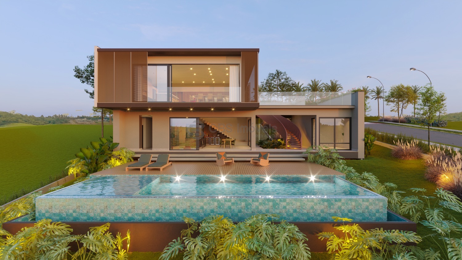 A área social impressiona pela amplitude e pela conexão com o lazer. A varanda gourmet se abre para o quintal com paisagismo, piscina e sauna, criando um cenário perfeito para receber. A residência conta com cinco suítes, garantindo privacidade e conforto, além de escritório, cozinha planejada com despensa, lavanderia e dormitório de serviço. Para completar, a casa possui elevador e garagem para até seis veículos, trazendo ainda mais praticidade ao dia a dia.