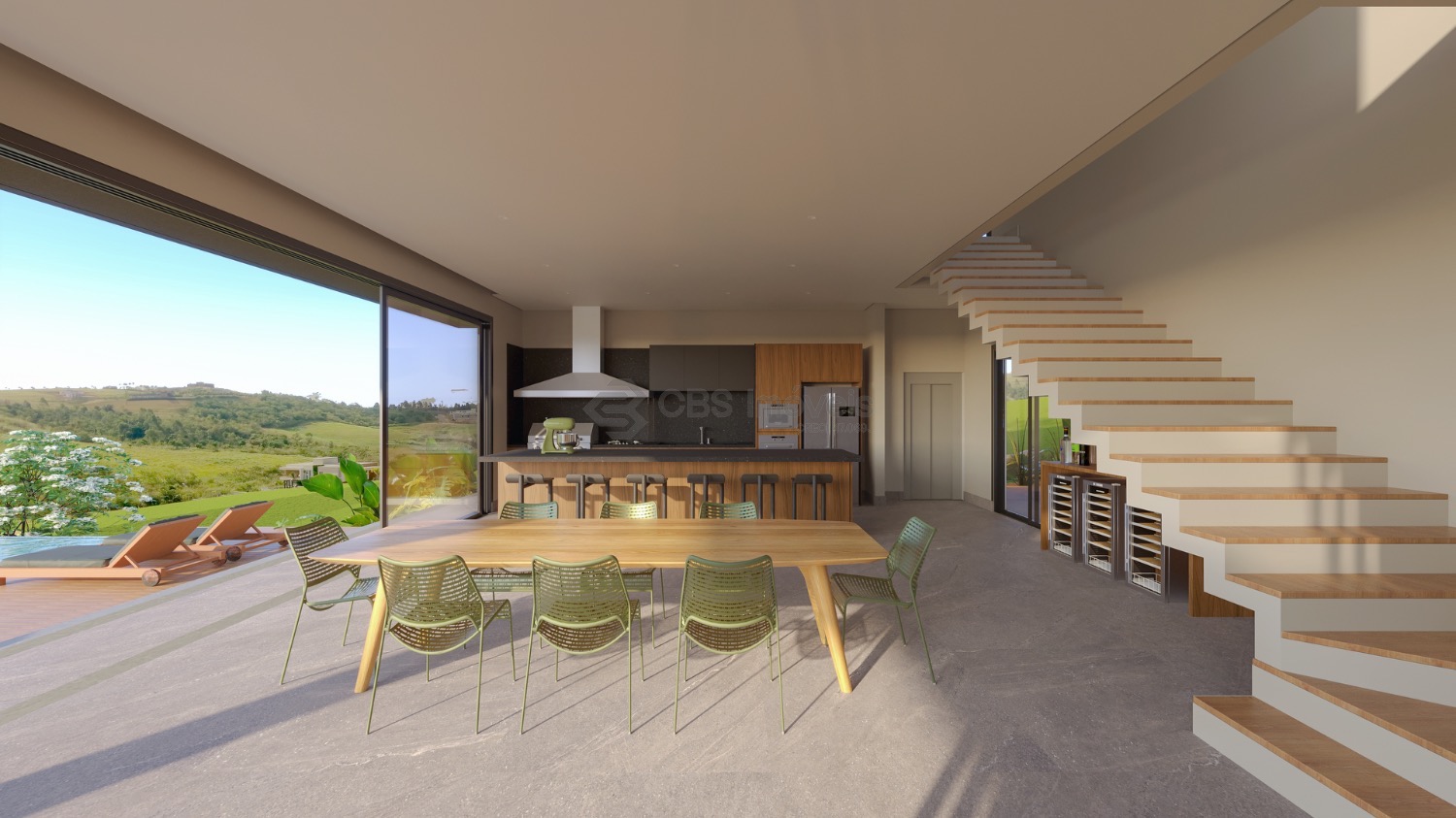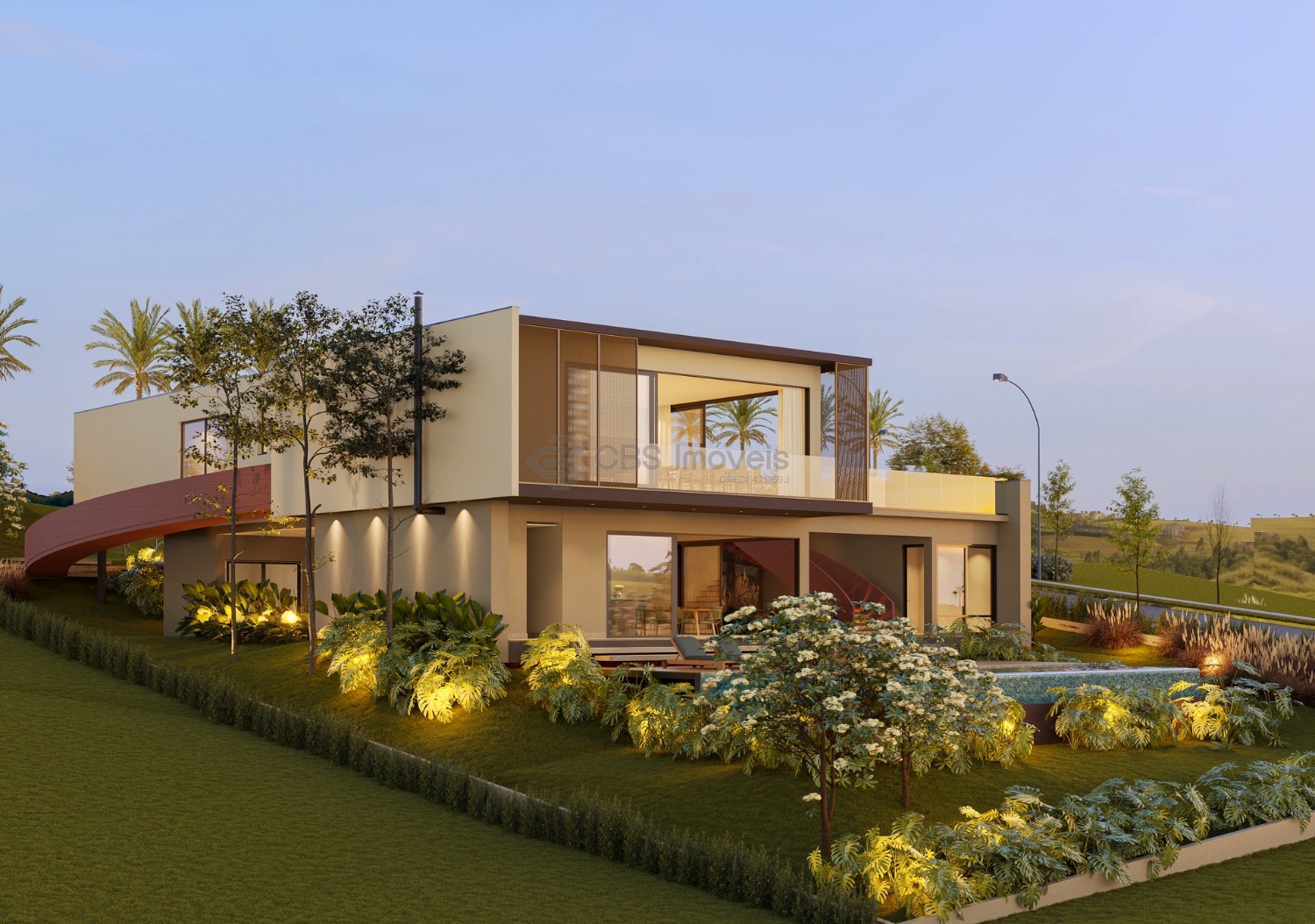 Com design contemporâneo inspirado no modernismo brasileiro, a casa apresenta concreto aparente, curvas elegantes em elementos de destaque e brises-soleil que protegem amplas aberturas do sol direto sem comprometer a ventilação natural. O projeto privilegia luminosidade, integração e conforto, criando ambientes amplos e fluidos que dialogam com o exterior.