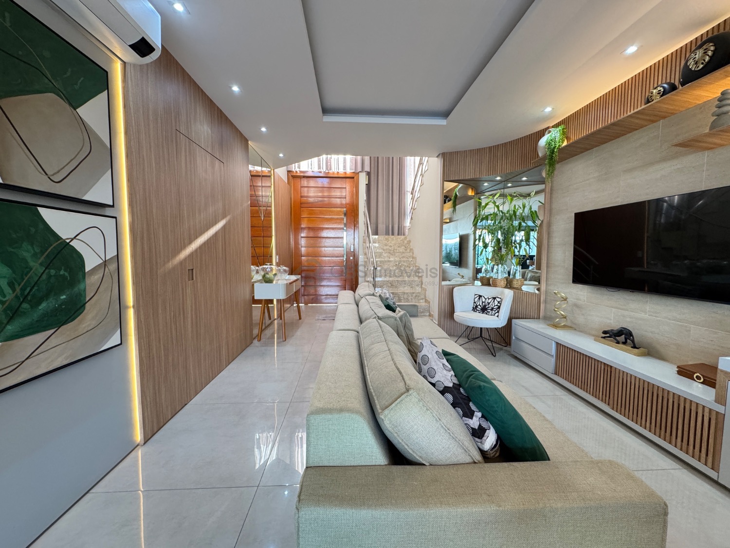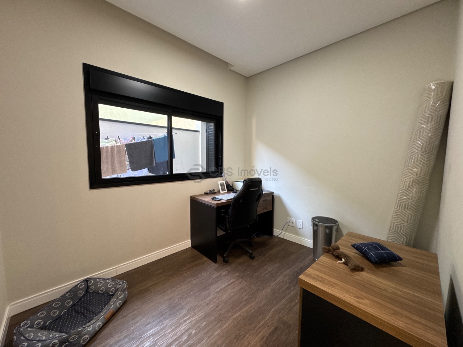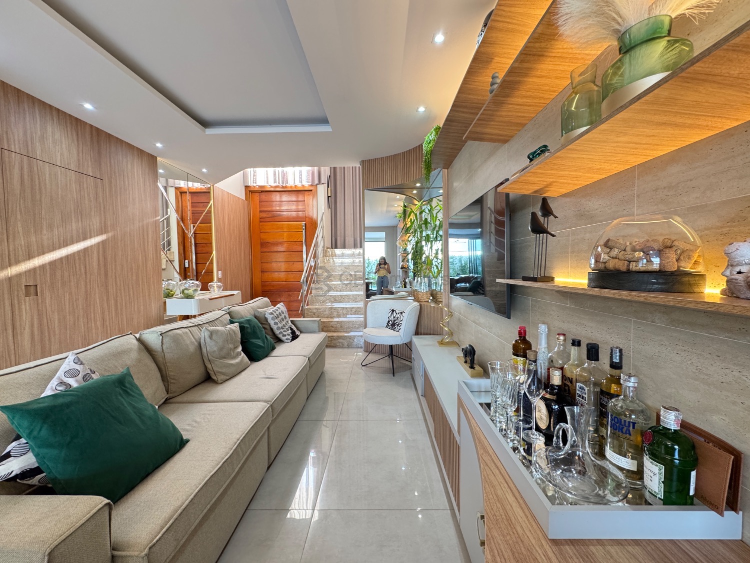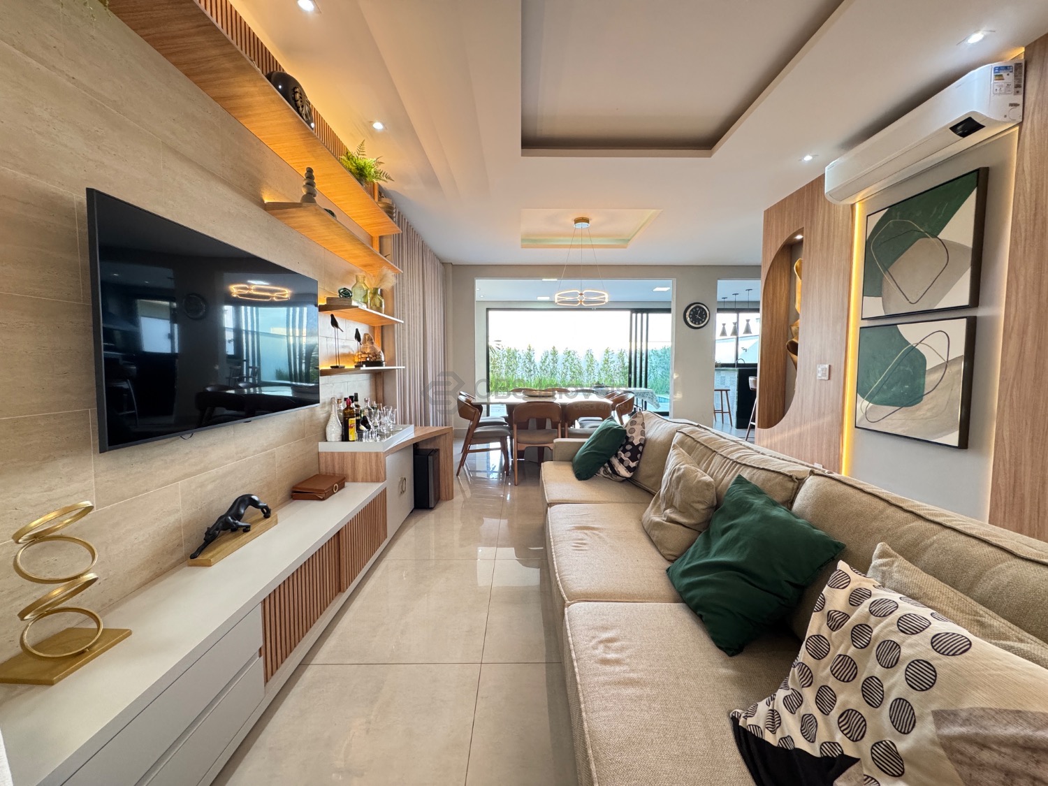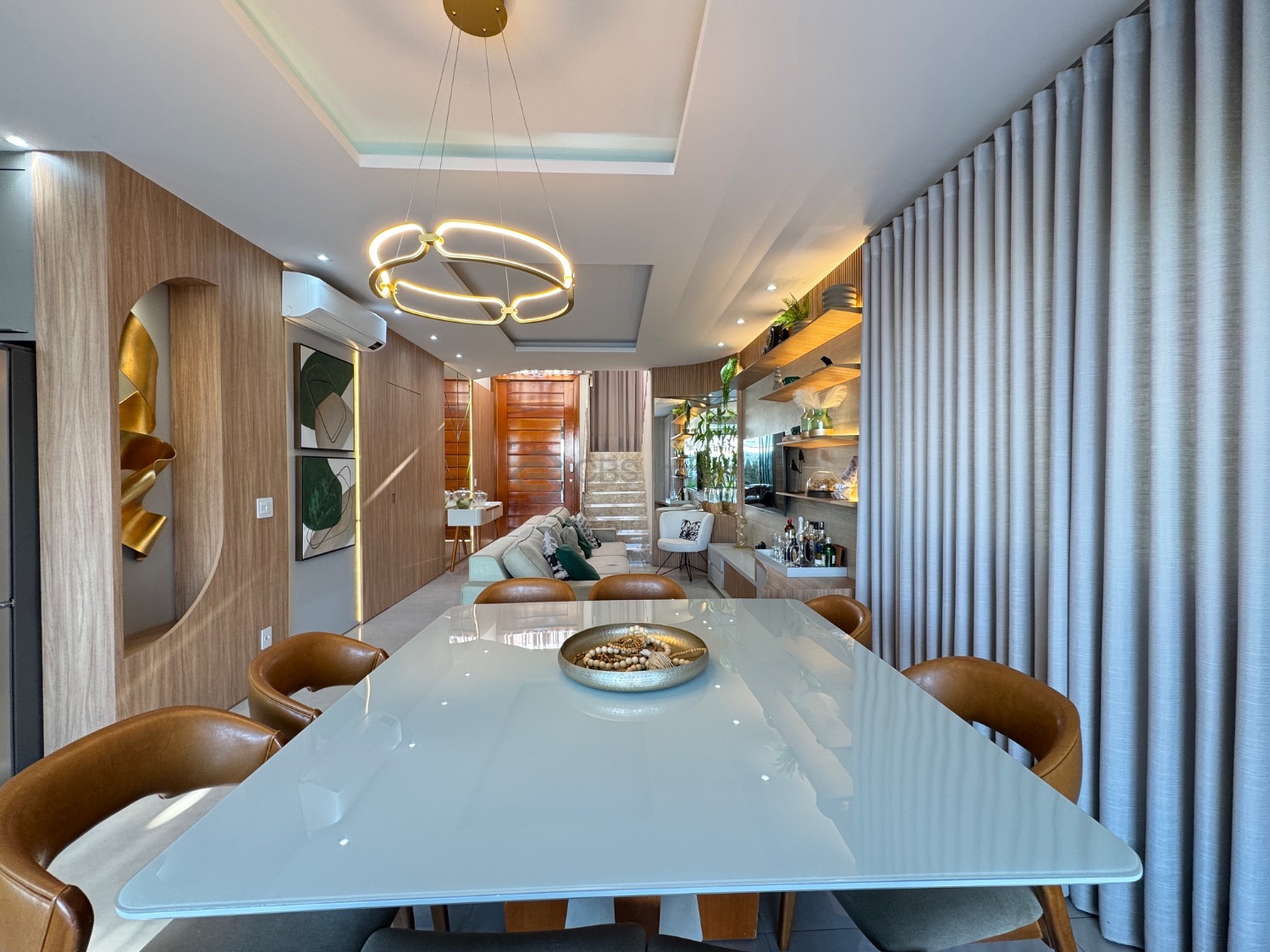 Imóvel conta com sala ampla, bem arejada e iluminada, com marcenaria completa e decoração elegante, além de sala de jantar, lavabo e escritório que pode ser facilmente revertido para uma suíte térrea.