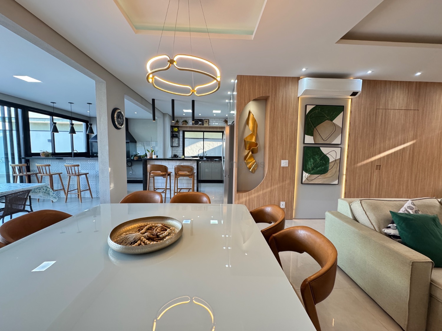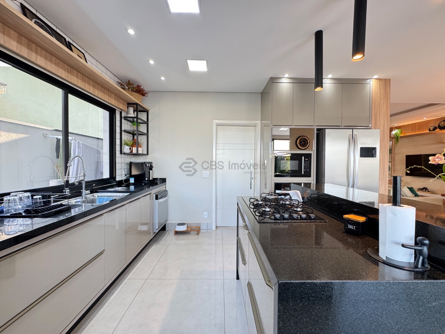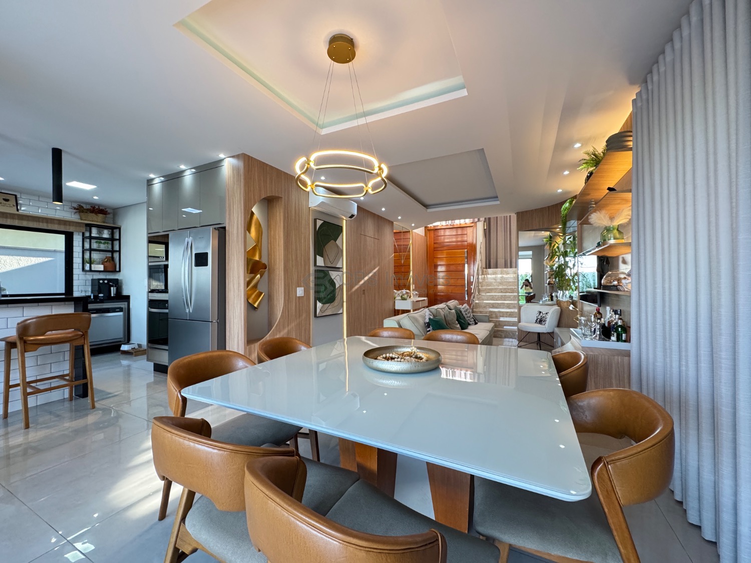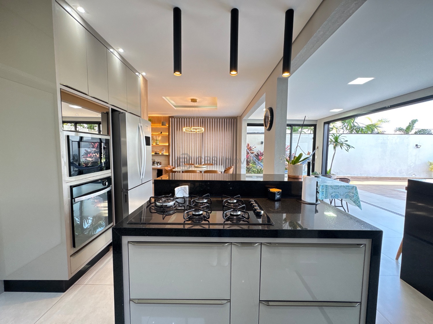 A cozinha é planejada e funcional, integrada à despensa, área de serviço e uma charmosa área gourmet. O espaço externo é um destaque à parte, com amplo quintal, piscina e um lindo paisagismo, ideal para momentos de lazer e convivência.