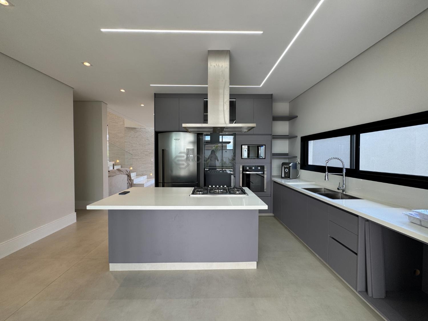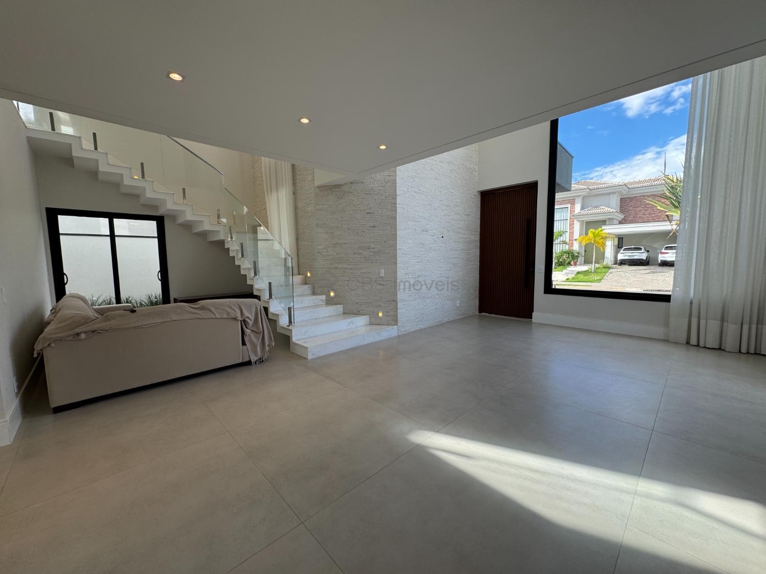 A área social conta com sala de estar e jantar integradas, lavabo e cozinha americana, proporcionando praticidade no dia a dia e boa conexão entre os espaços. Ao todo, são quatro suítes, com destaque para a suíte master com closet, além de ambientes que atendem com conforto a rotina da família.