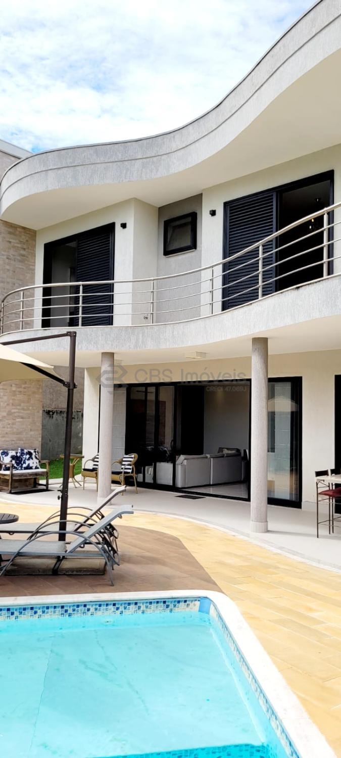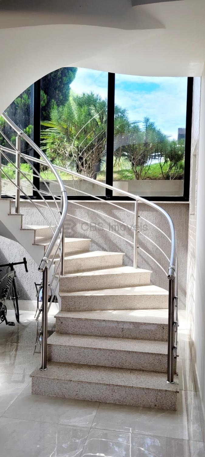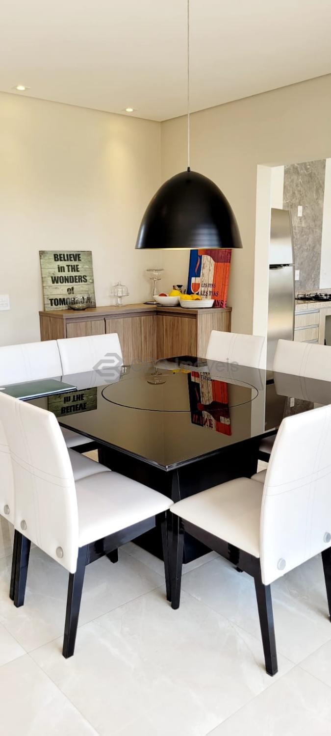 A casa ainda conta com energia fotovoltaica, aquecimento solar, ar-condicionado instalado e seis vagas de garagem, agregando eficiência e conforto à rotina.
