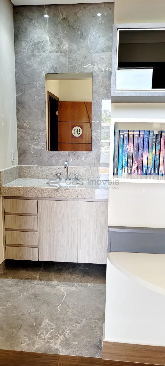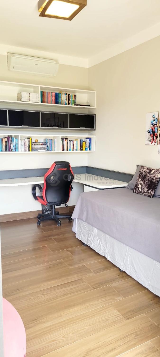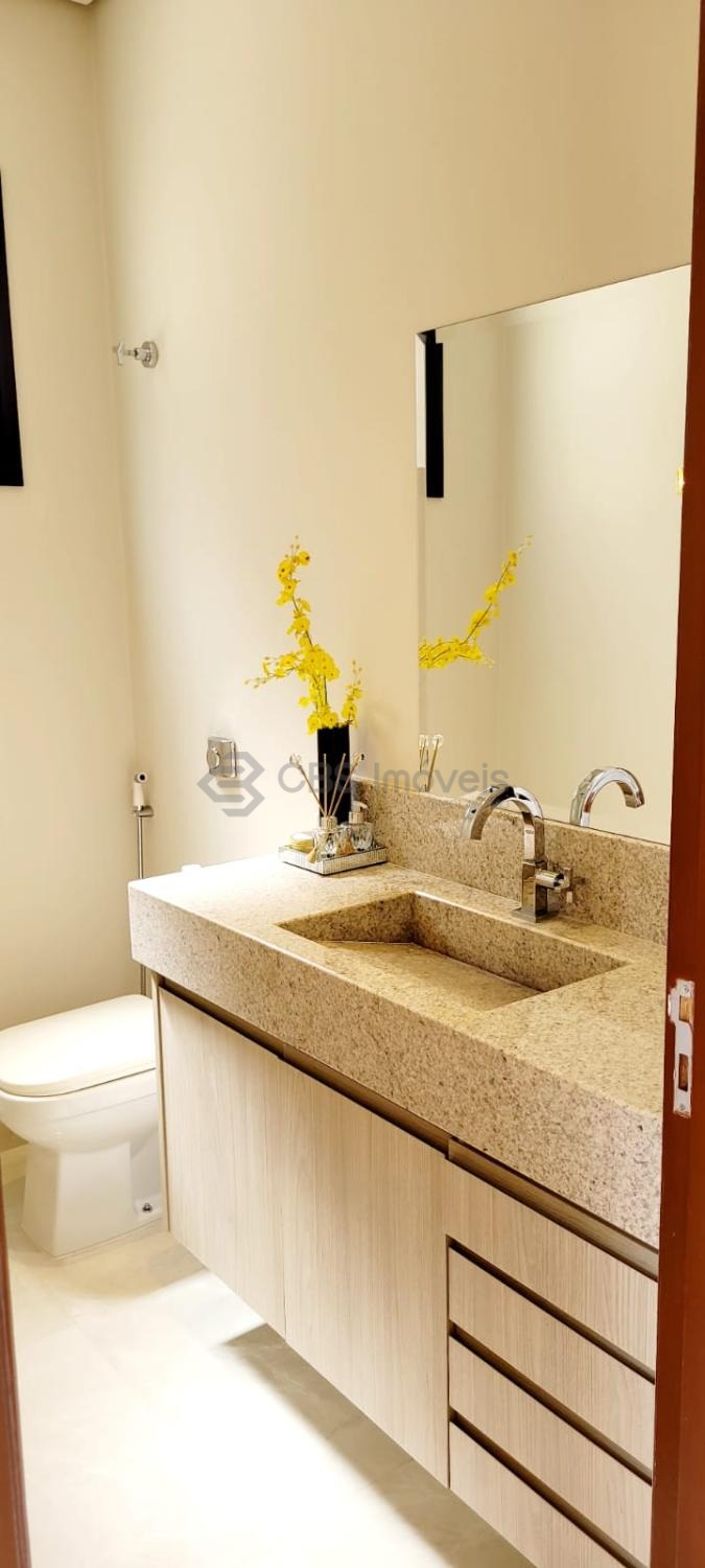 No térreo, a área social é fluida e acolhedora, com sala de estar climatizada integrada à sala de jantar, cozinha com armários planejados e uma varanda gourmet que se abre para a área externa, ampliando as possibilidades de uso da casa. O lazer acompanha esse mesmo conceito, com piscina aquecida e um quintal espaçoso, que realmente convida ao uso frequente e não apenas ocasional.