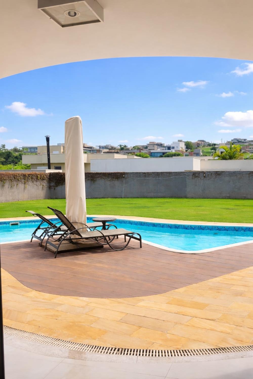 Casa à venda no condomínio Campo de Toscana, em Vinhedo, está posicionada em uma rua sem saída, próxima ao lago, um cenário que combina silêncio, privacidade e uma conexão constante com o verde ao redor.
