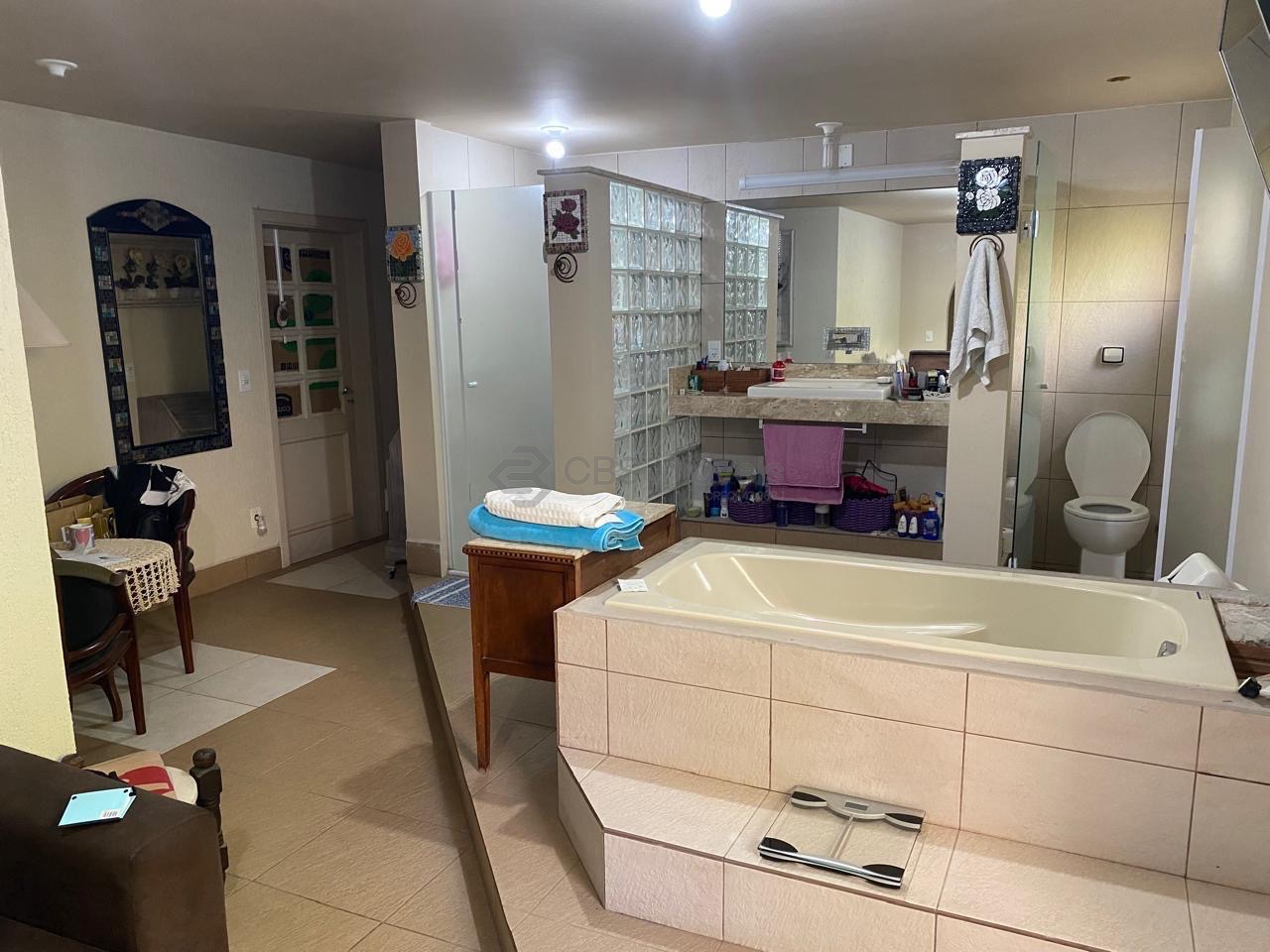 A casa possuí 4 suítes, 2 quartos, 3 salas, cozinha, sala de almoço, varanda envidraçada, salão de jogos, piscina, 6x12.