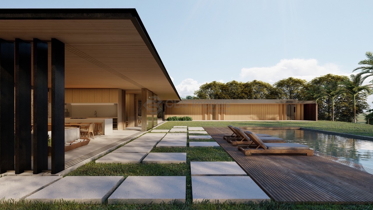 O terreno possui como grande diferencial a possibilidade de aquisição com projeto arquitetônico pronto e aprovado na prefeitura. O projeto foi desenvolvido para uma casa térrea de alto padrão, com garagem subterrânea e elevador, unindo sofisticação, conforto e funcionalidade. Essa condição permite ao comprador ganhar tempo, reduzir custos e avançar diretamente para a fase de obra.