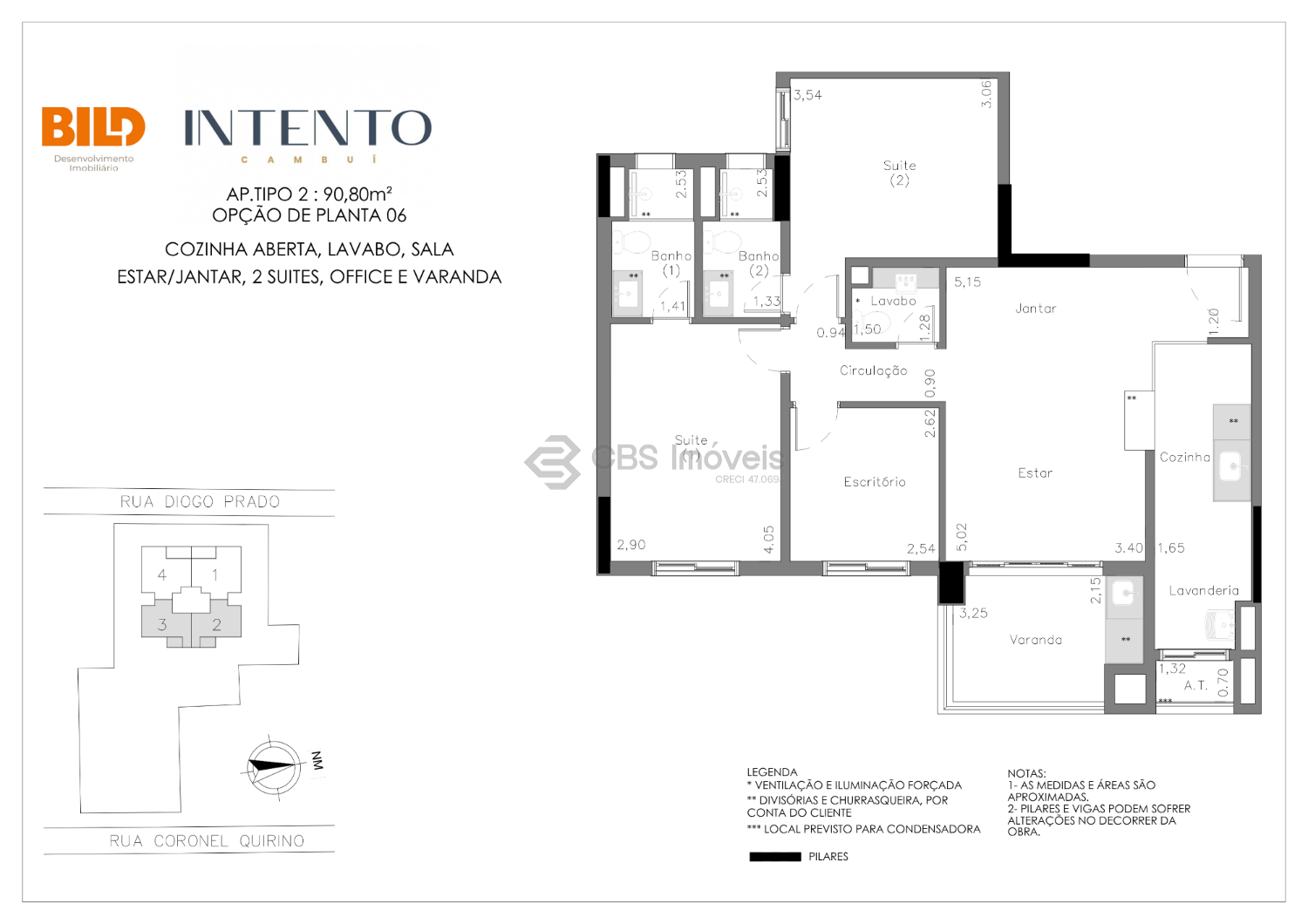 PLANTA TIPO 2 e PLANTA PADRÃO - 90,80M² |